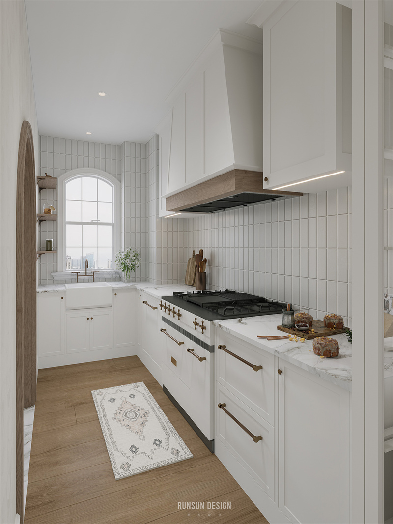 木質(zhì)的櫥柜配合仿古的瓷磚