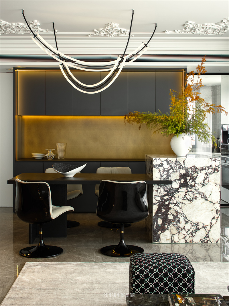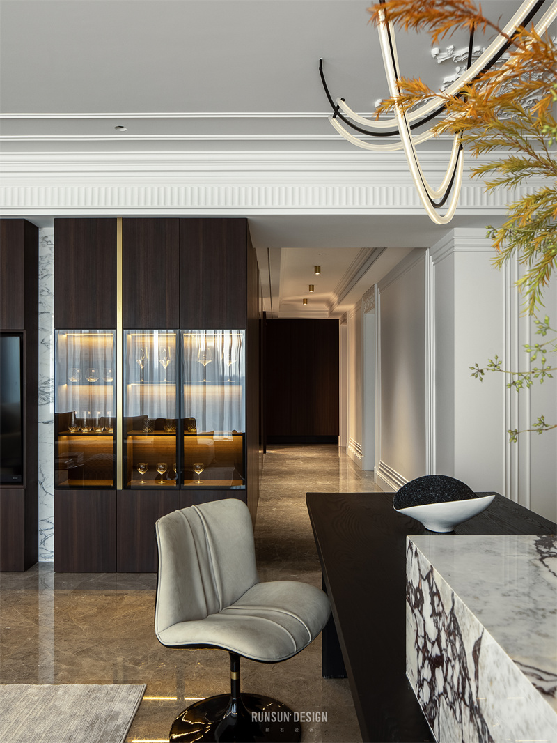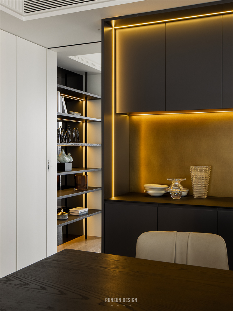 黃昏的燈光讓空間的氛圍迷離優(yōu)雅