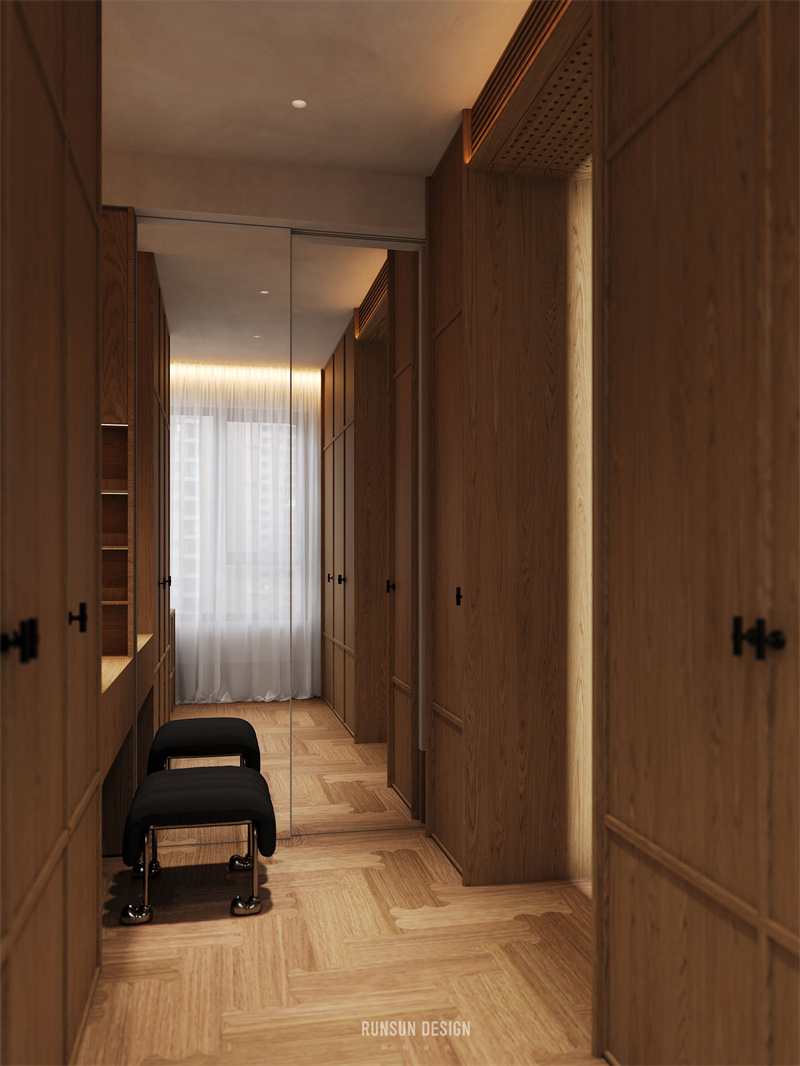 本案在主衛(wèi)與次衛(wèi)中間的衣帽間