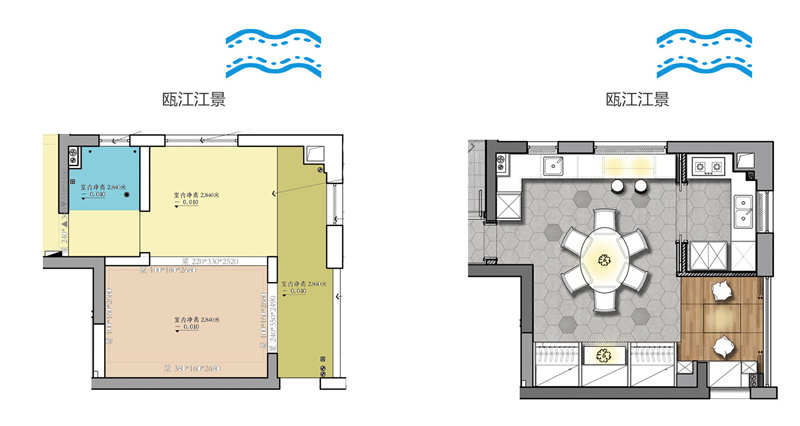 我們通過對(duì)房型空間的獨(dú)特改造,形成一個(gè)獨(dú)具特色的西廚與吧臺(tái)。吧臺(tái)所在位置原來是個(gè)小房間,透過這個(gè)小房間的窗幾我們能一眼看到美麗的甌江江景。如今在西廚與吧臺(tái)位置,我們將窗簾搖上去,我們就能端一杯咖啡,看著江景享受慢慢的時(shí)光啦!