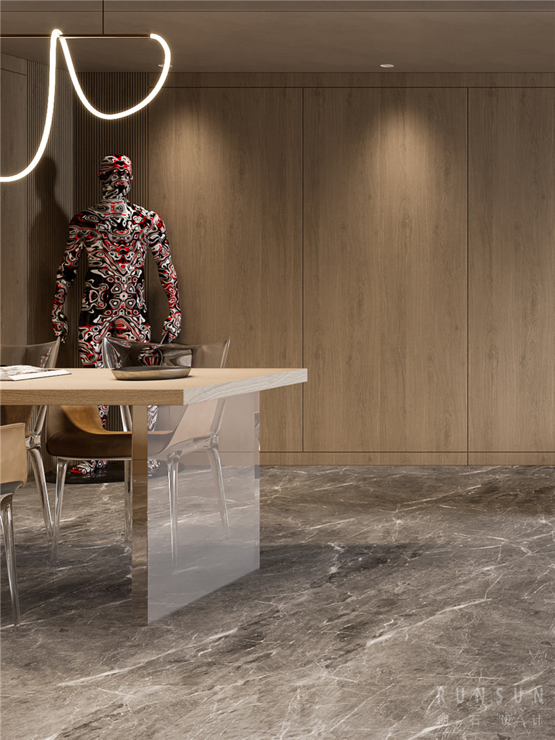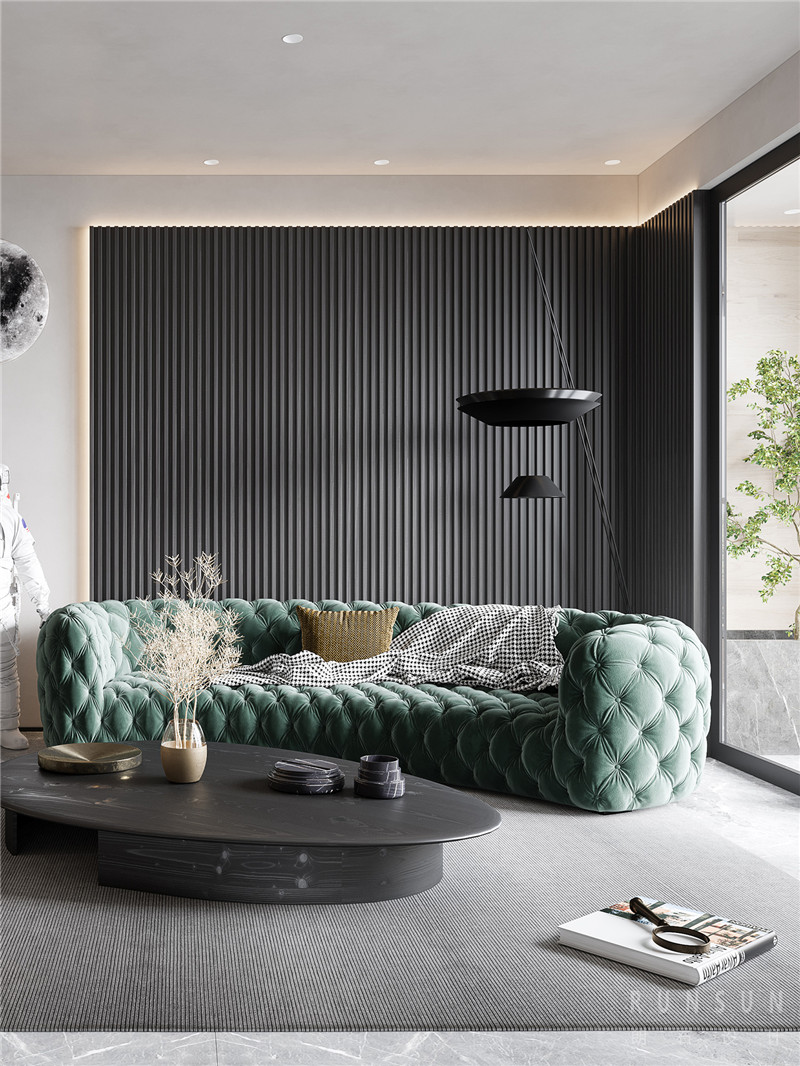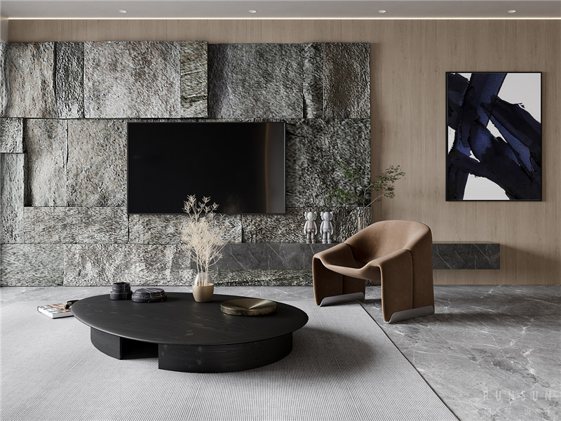 仿巖石材質(zhì)構(gòu)建的電視背景墻