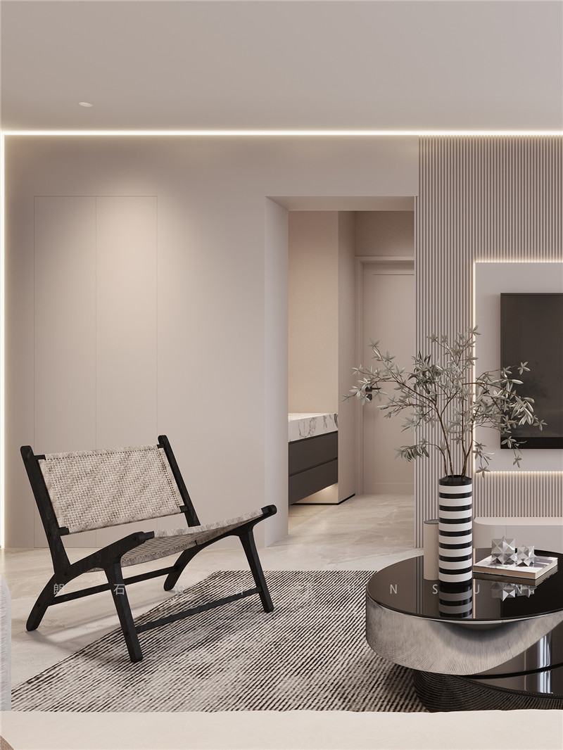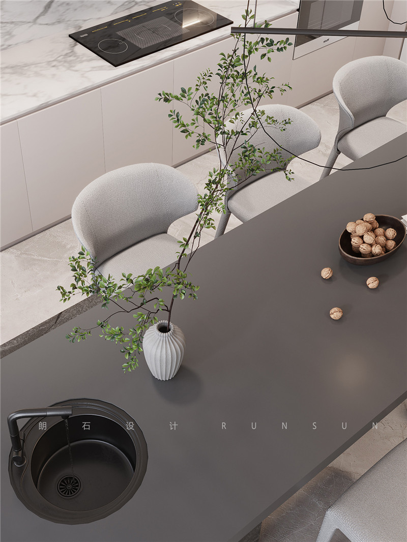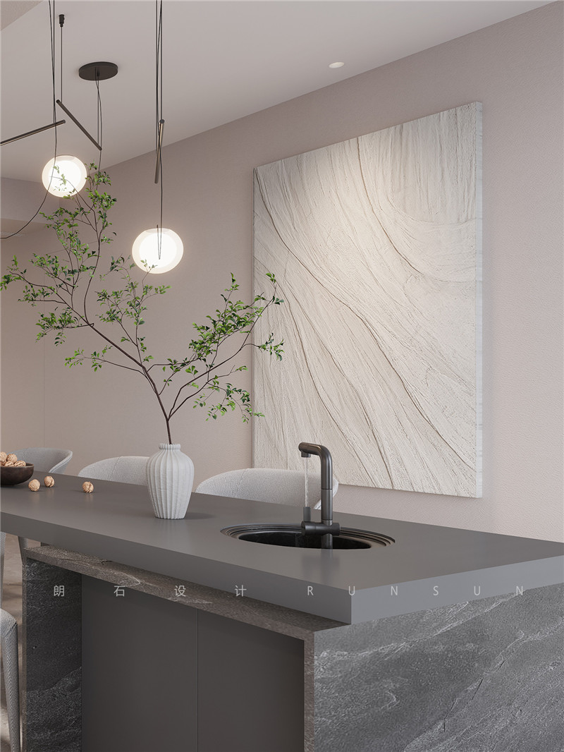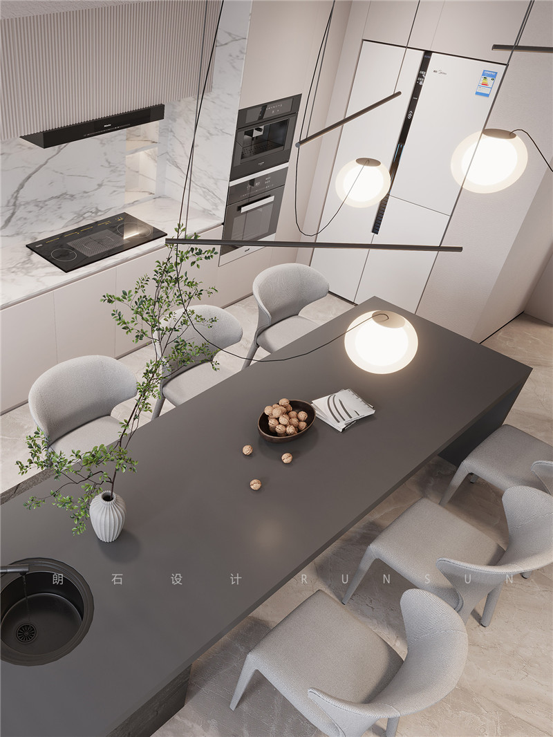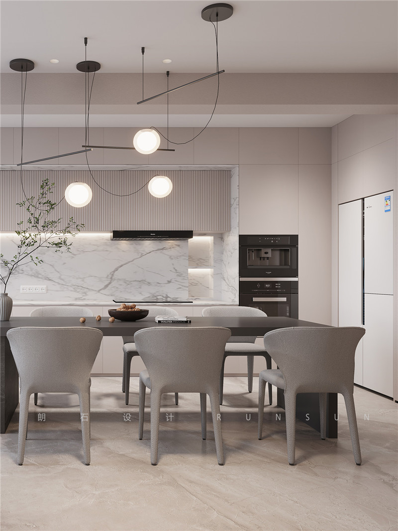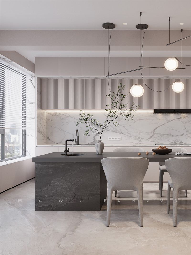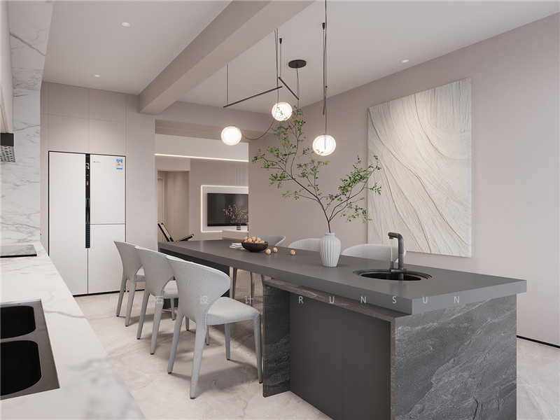 現(xiàn)代山巖質(zhì)感的餐桌連通著水吧