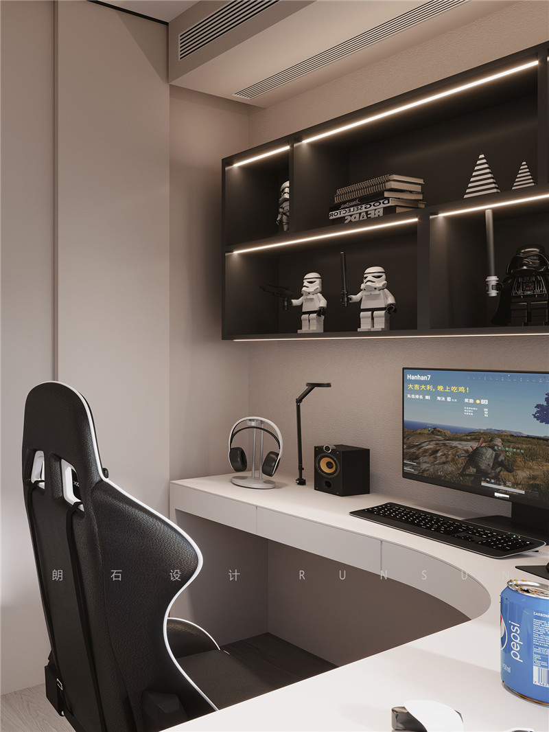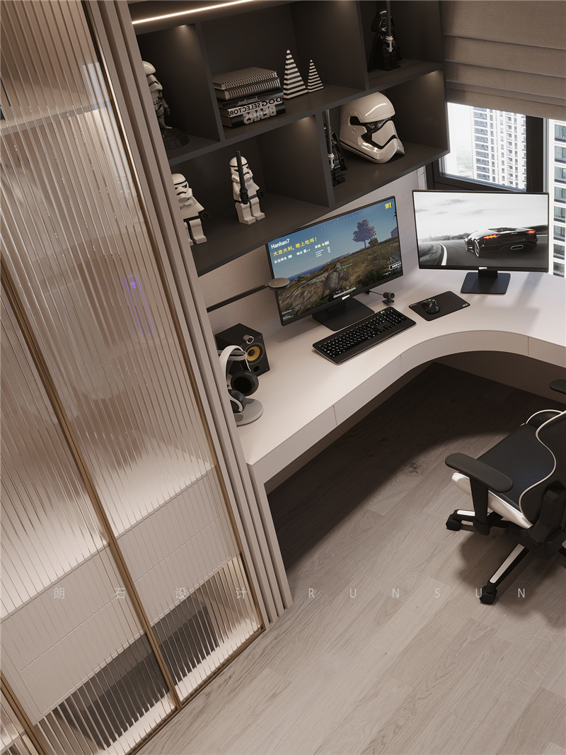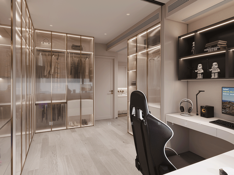 充滿儀式感的衣帽間的一側(cè)是電競房