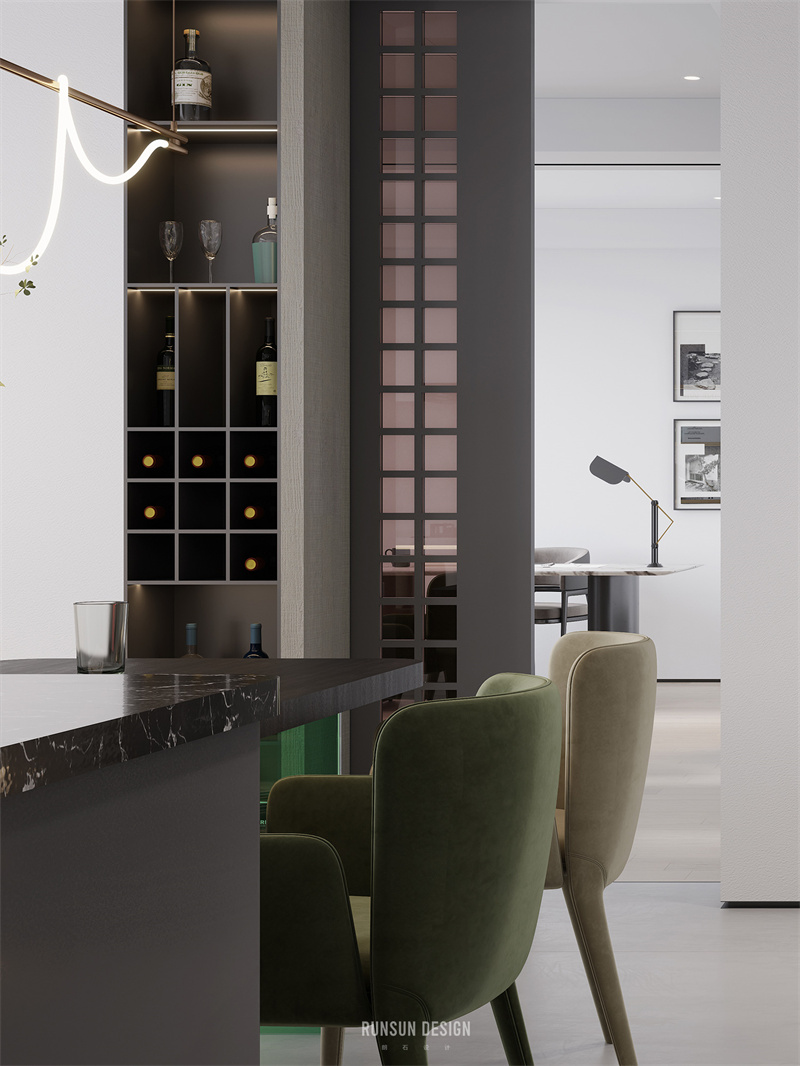 玻璃 酒柜 燈光的配套讓這個(gè)空間更顯摩登