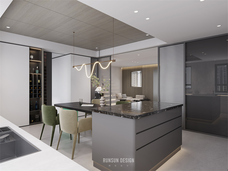 吧臺(tái)與餐桌的結(jié)合使得餐廚形成洄游的動(dòng)線