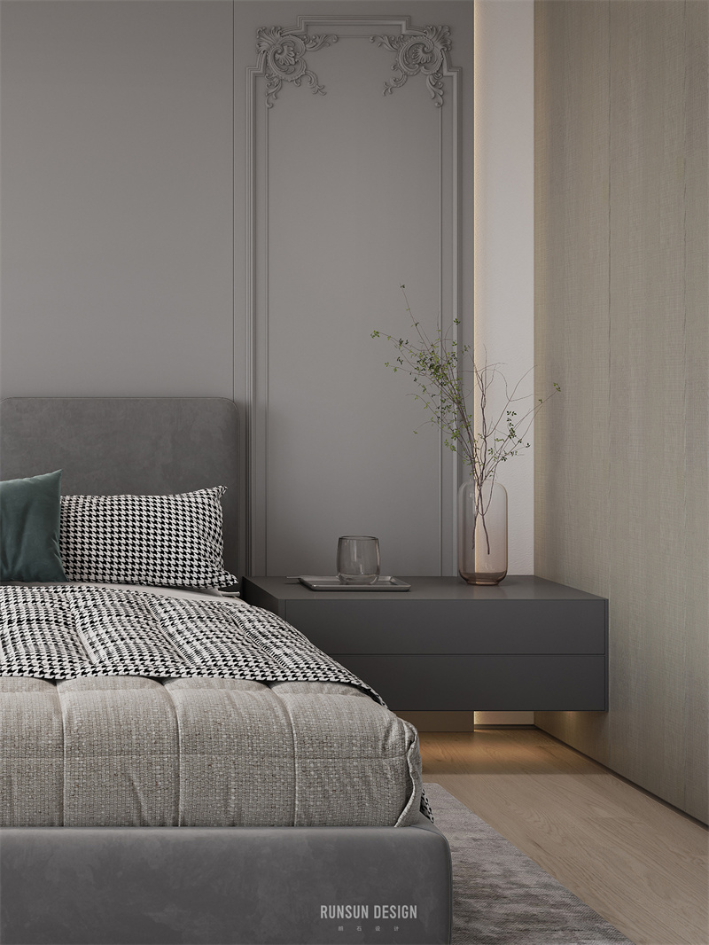 點(diǎn)滴的雕花點(diǎn)綴承托起主臥的高貴