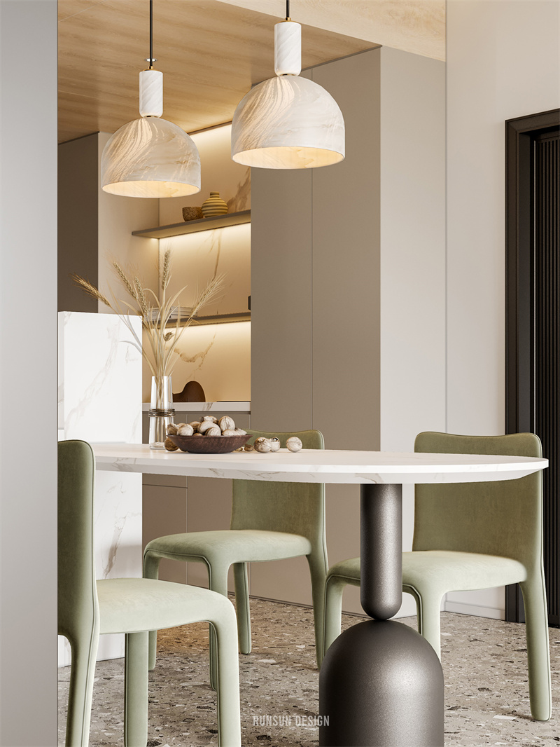 木質(zhì)吊頂與復(fù)古的吊燈給予這樣的感觸