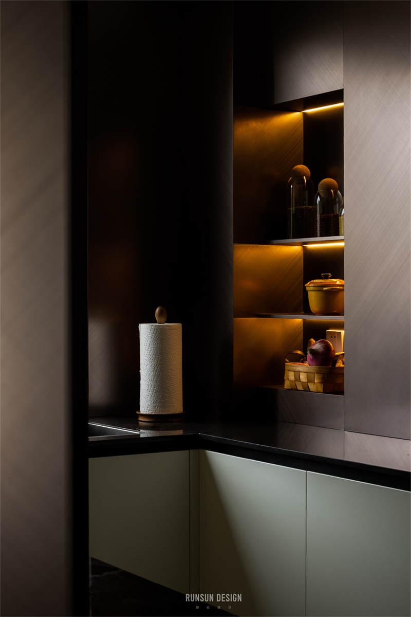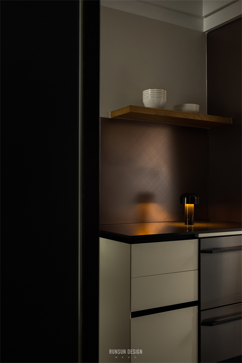 運(yùn)用金屬質(zhì)感的護(hù)墻與層板