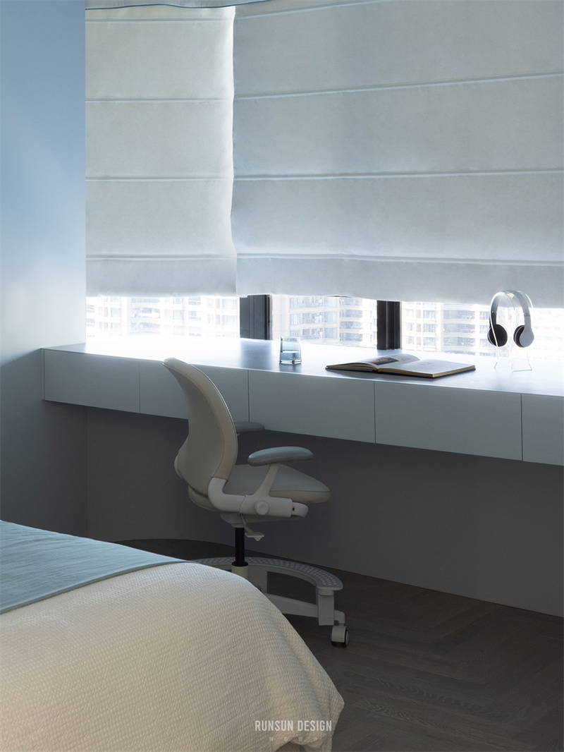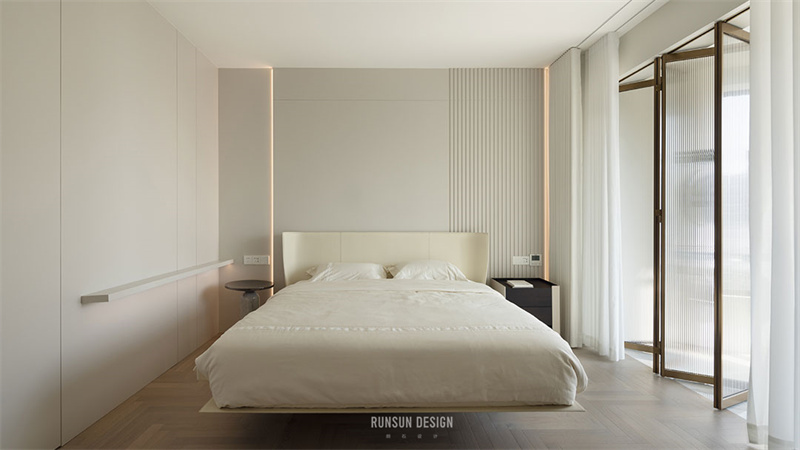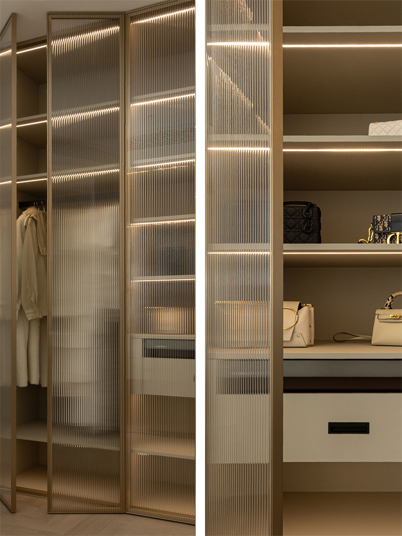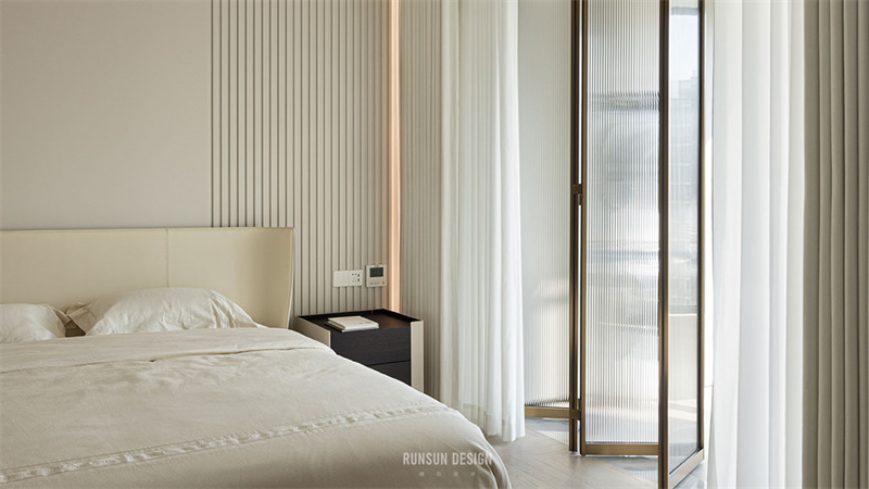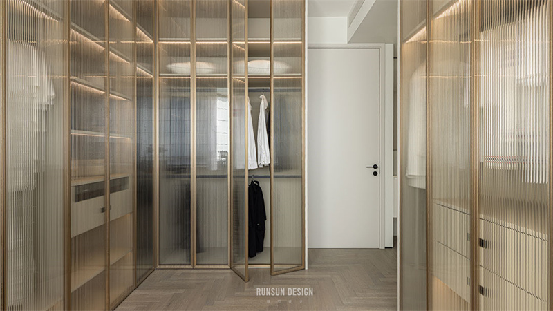 金屬衣柜與布藝窗簾的質感