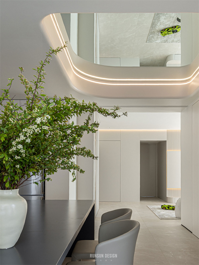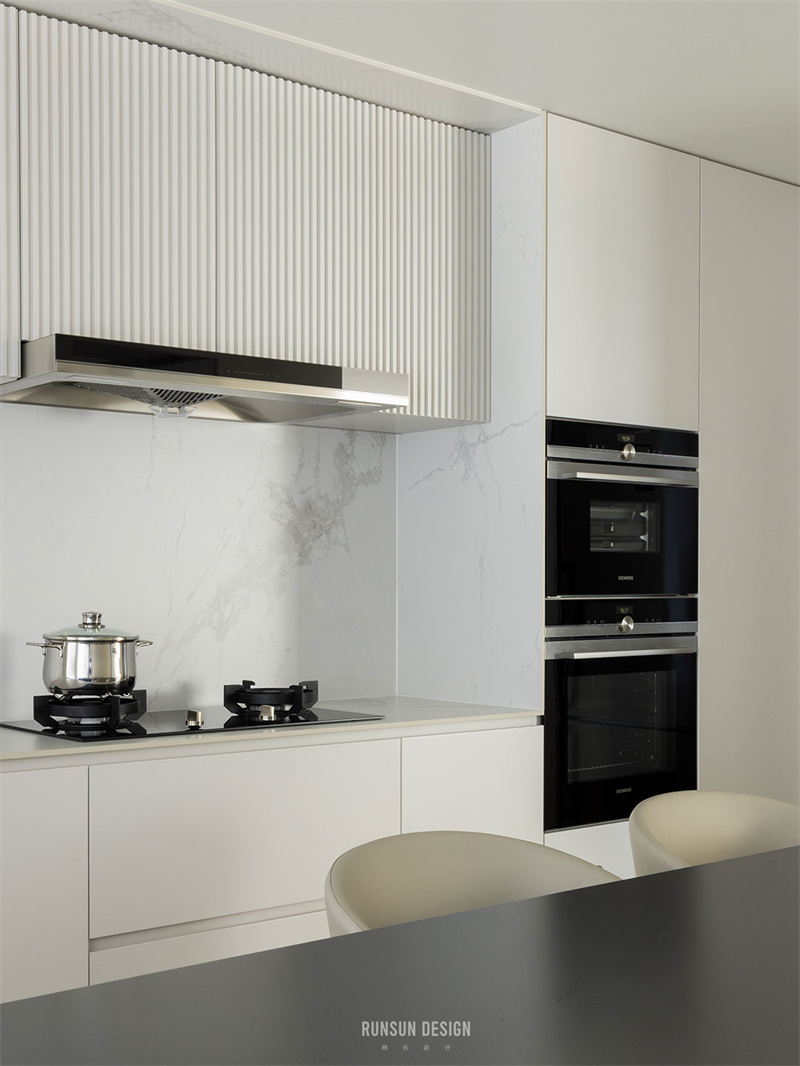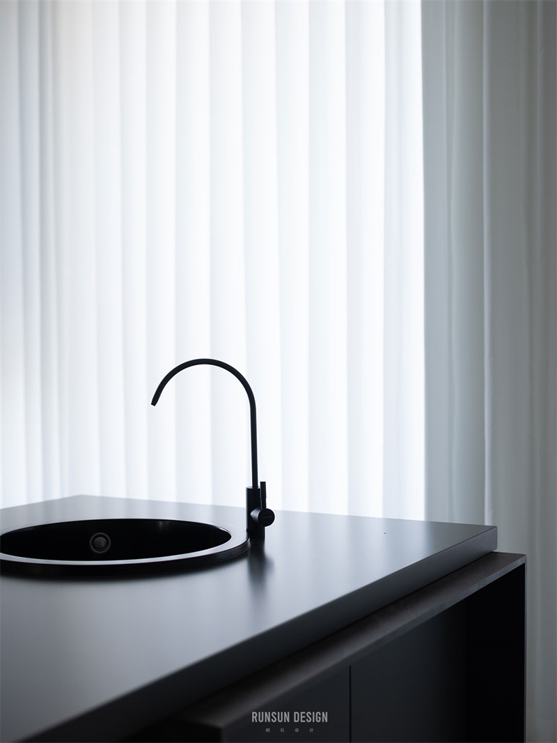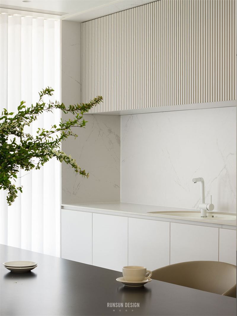 現(xiàn)代山巖質感的餐桌連通著水吧