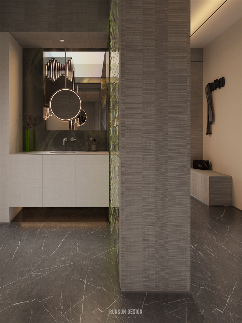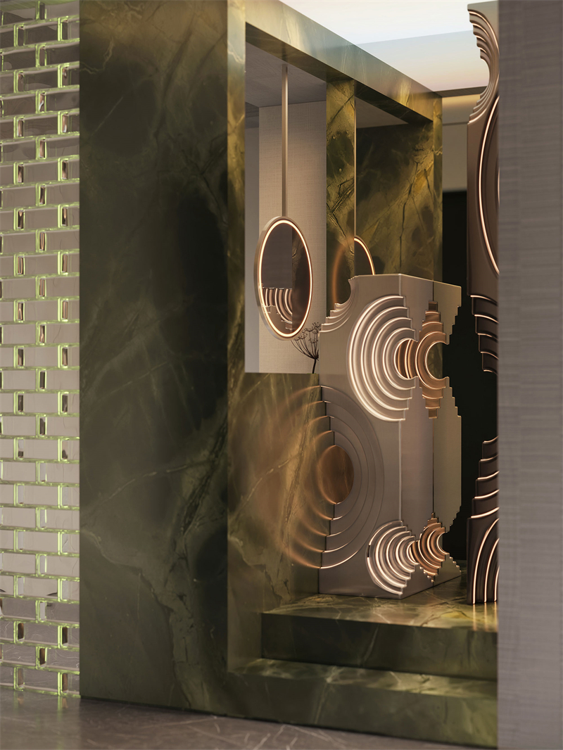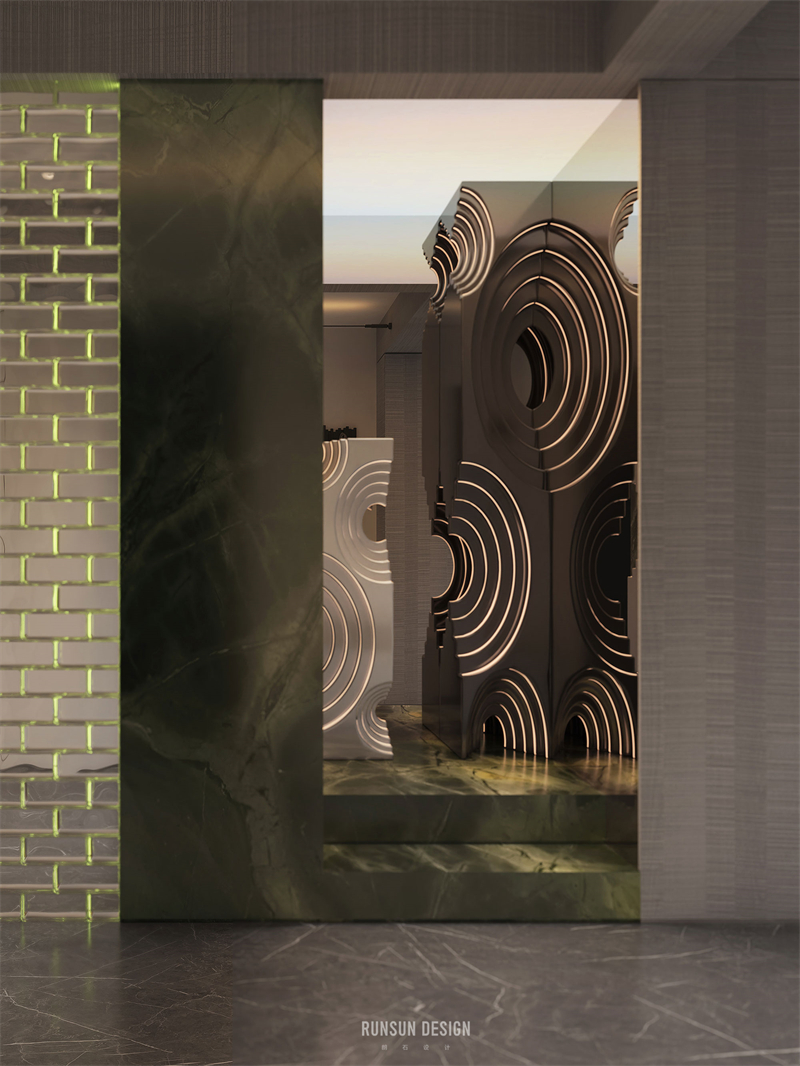 本案玄關(guān)以建筑 光照 山水為意向模版