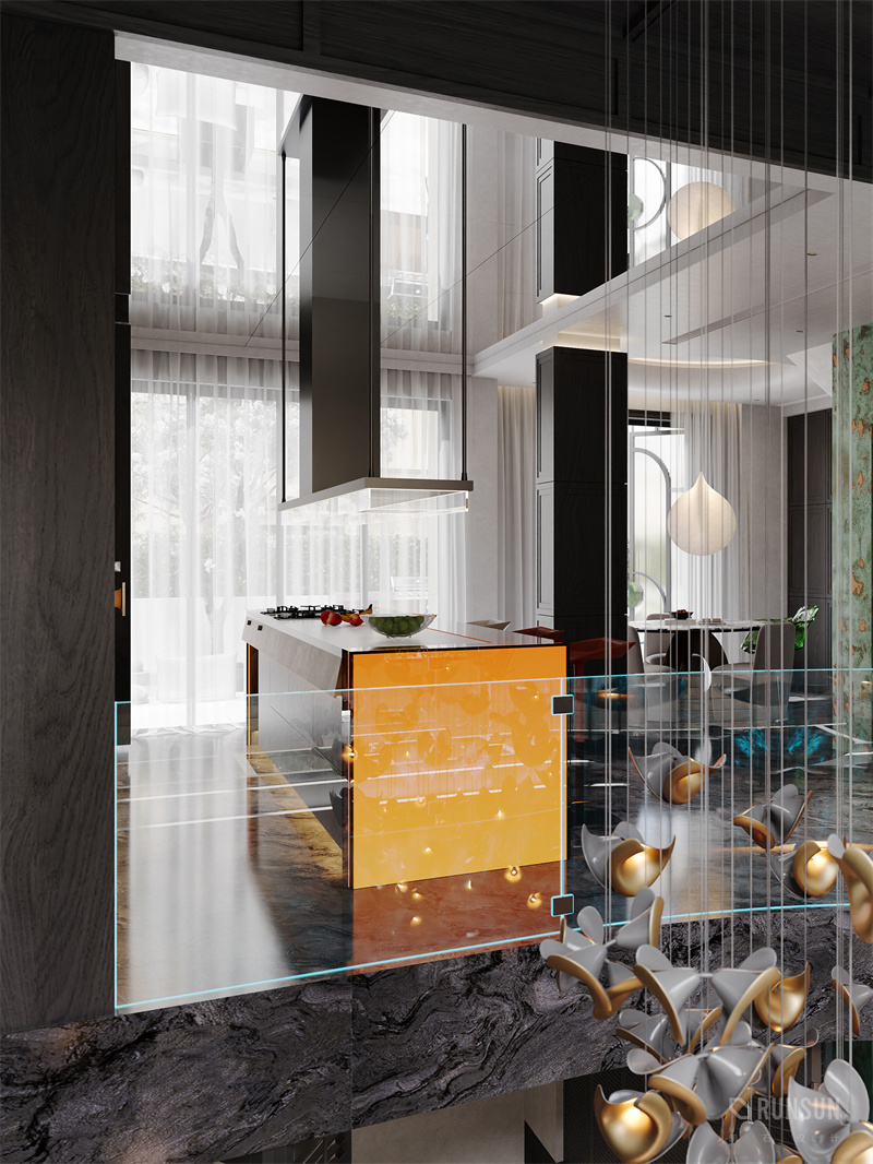 通過懸浮樓板與上下層空間的聯(lián)通關(guān)系