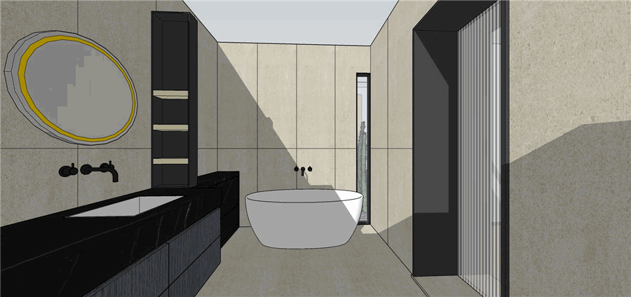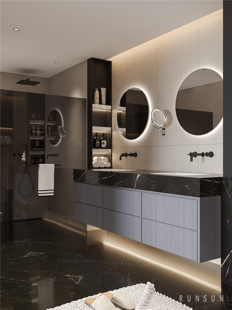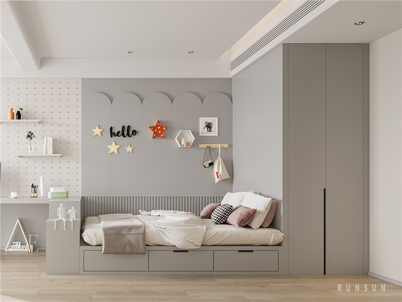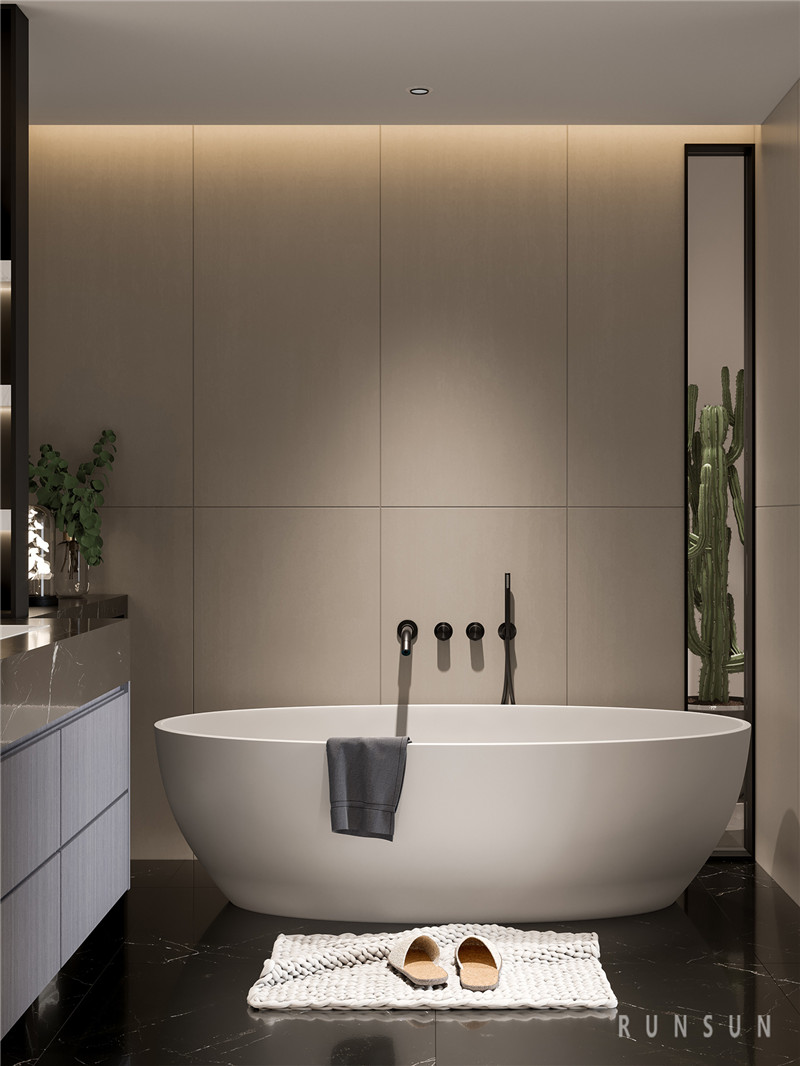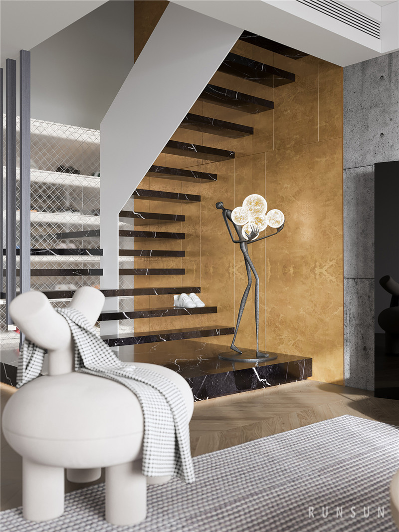 Our owner is a shoes collector.We set up a shoe display cabinet for him in one wall of the stairs.What's more interesting is that in the space on the second floor, the cactus beside the stairs and the bathtub of the main bathroom can be seen each other through a glass. This glass is atomized by electricity.