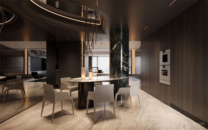 DINING ROOM-(鏡面吊頂、石材煙道)