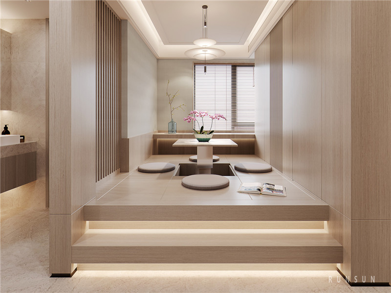 In this space, we use space and plants to express people's inner feelings. First into the space, mixed with the original wood grain parapet appeared in the line of sight, the lightness of plants added to the level of space. The Chinese bonsai is simple, sparse and meaningful. It echoes the home mood of the owners. It seems that the sense of remoteness extends beyond this space.