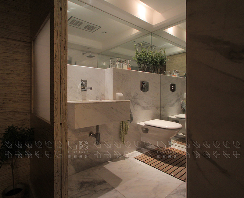 衛(wèi)浴,可能是大多數(shù)人對居住空間最在乎的空間之一。原生態(tài)的衛(wèi)生間,運(yùn)用了大理石材與舊木板。仿佛讓人走進(jìn)鄉(xiāng)間的民宿,卻又不失精致與華麗。創(chuàng)意的鏡面墻或使我們覺得這是一個(gè)足有二十平米的超大衛(wèi)浴室。
