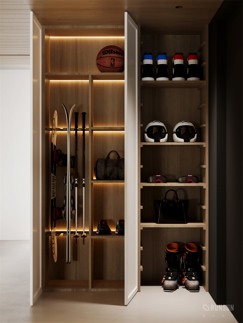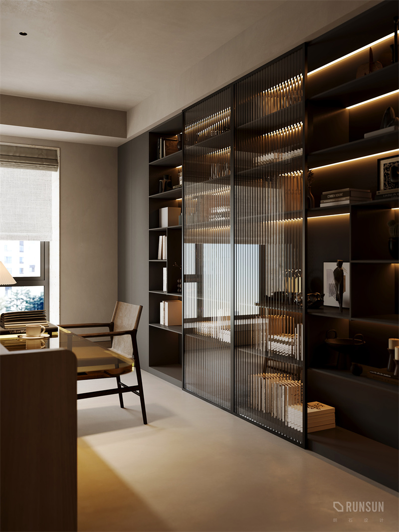 書柜內(nèi)嵌入柔和的燈帶