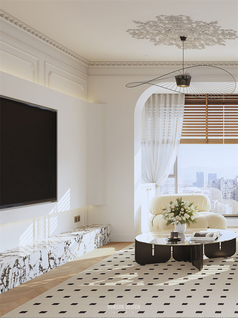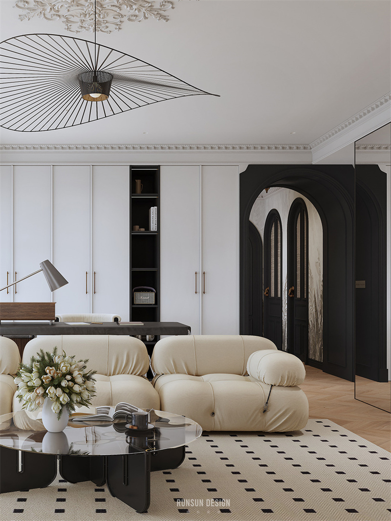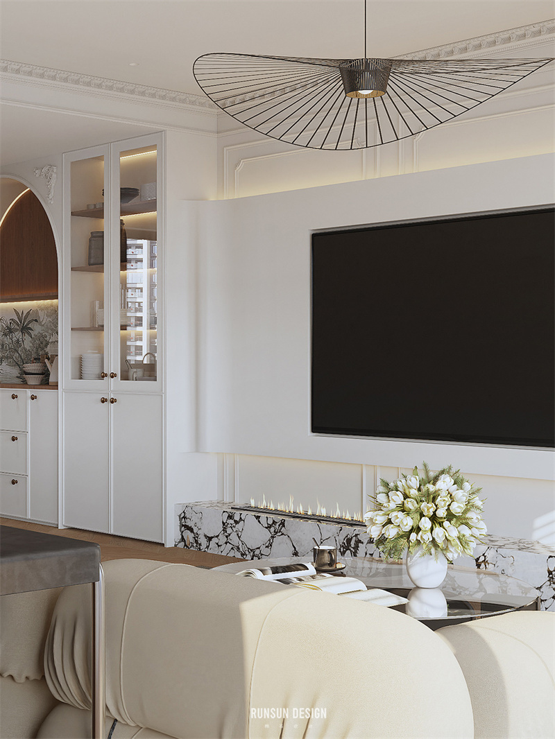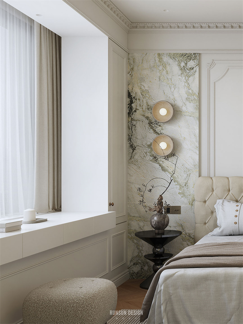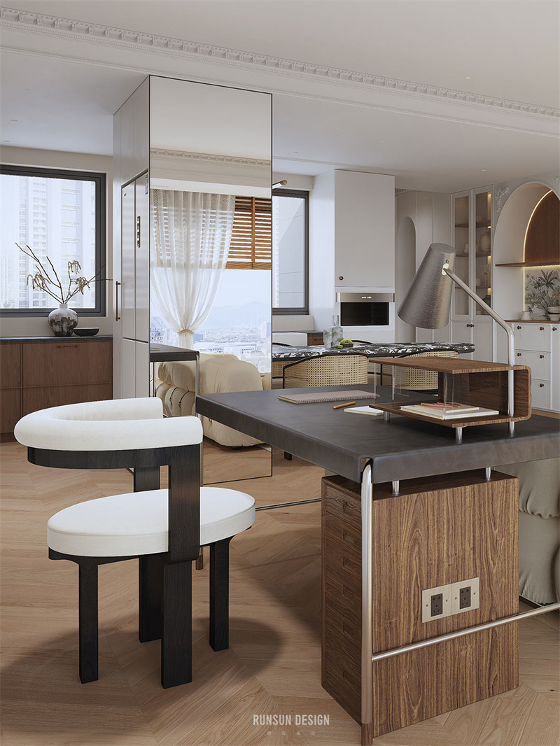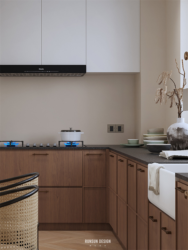怎么能既擁有美觀開放式廚房,又擁有合理的廚房操作動(dòng)線?本案將冰箱放置在餐廳中間,完美融合風(fēng)格的同時(shí),形成了便于操作與行走的洄游動(dòng)線,使得這個(gè)空間靈動(dòng)自然,妙趣橫生。全屋以春之葳蕤為主題,云霞羨慕她的衣裳,鮮花想要她的容顏,春風(fēng)吹拂著欄桿,花上的露珠都是那么濃盛。