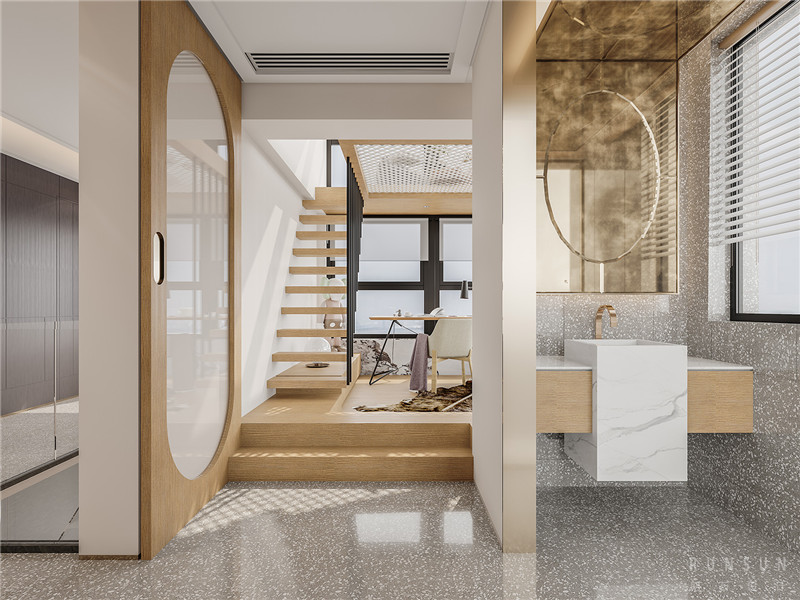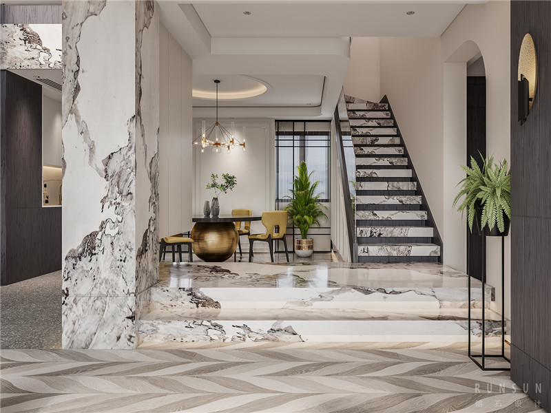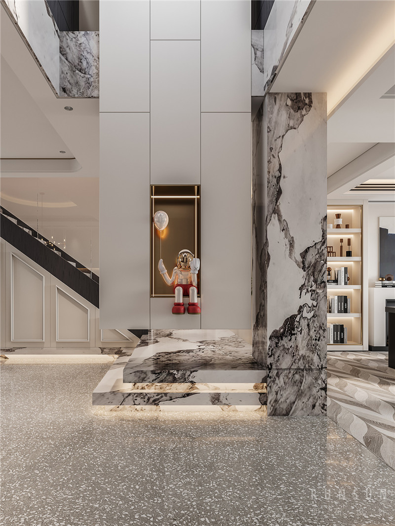 玄關(guān)背景一直從一樓延伸到二樓