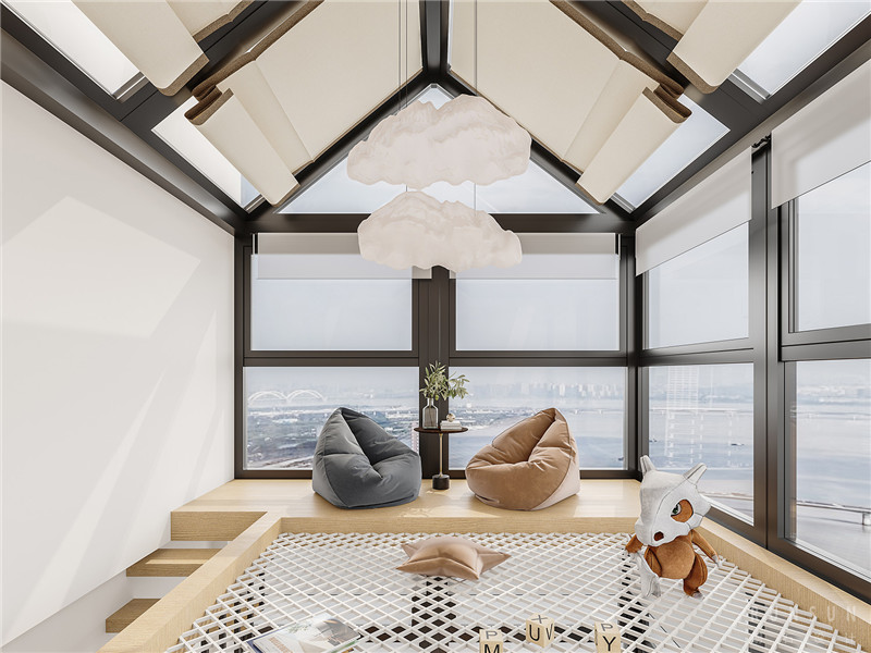 In this space, we designed the study and leisure area on the roof. Children can climb to the leisure area to read and bask in the sun, or lie down at night counting stars.