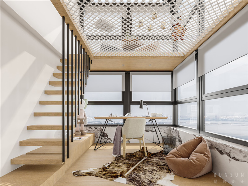 我們設(shè)計了頂層的書房與網(wǎng)格休閑區(qū)