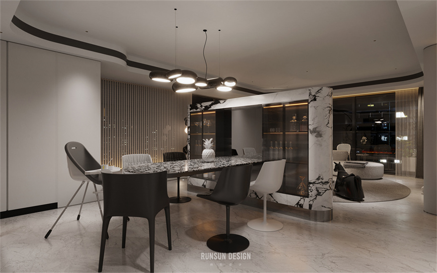 諸多圓弧角的設(shè)計與餐椅的選擇