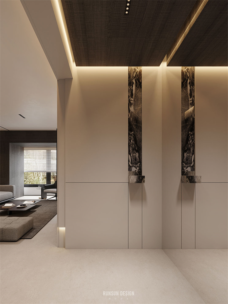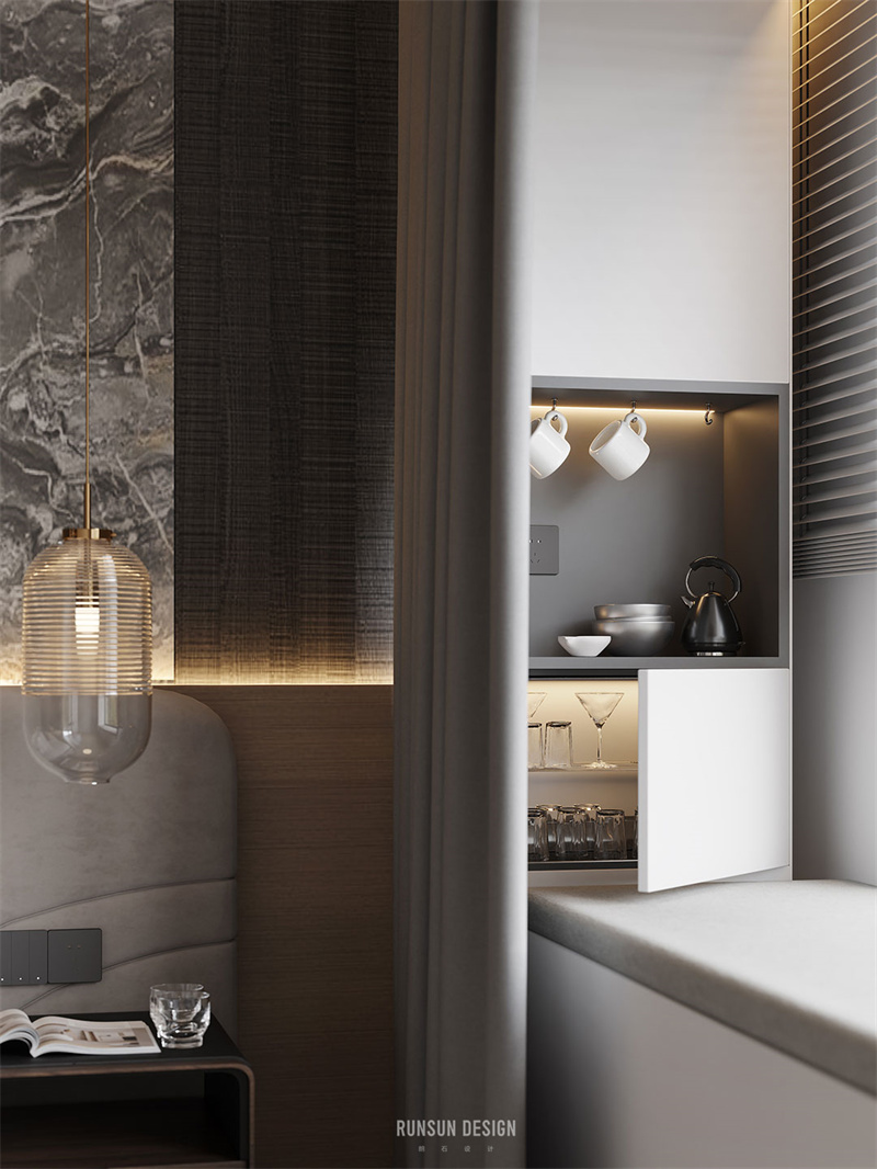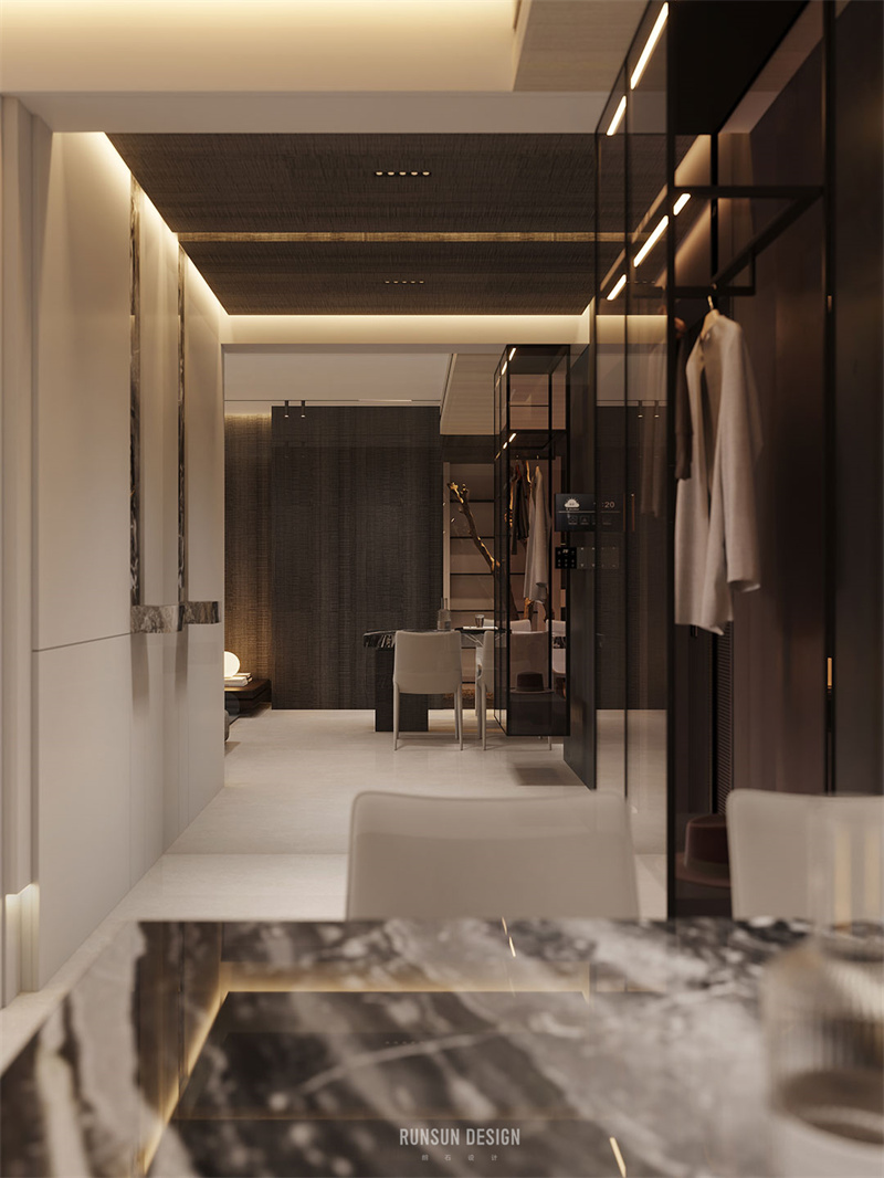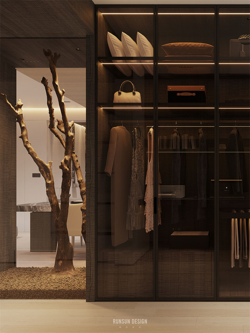 除了房子的風(fēng)格外,置物收納也是業(yè)主關(guān)心的一大主題。在這套空間中,我們將收納形式與設(shè)計(jì)美學(xué)相結(jié)合,規(guī)劃和解決物品分類整理的有序性,意圖用更美妙的方式打理生活起居。同時(shí)解決居住時(shí)間越長(zhǎng)房間收納越亂的難題。