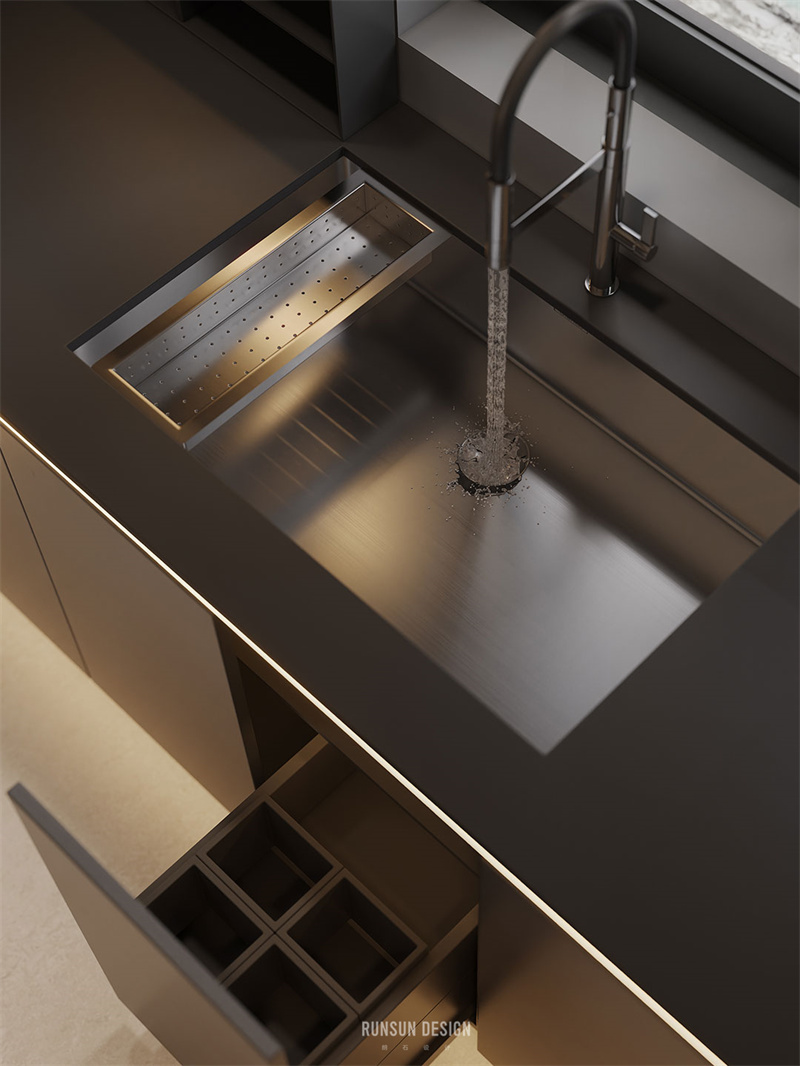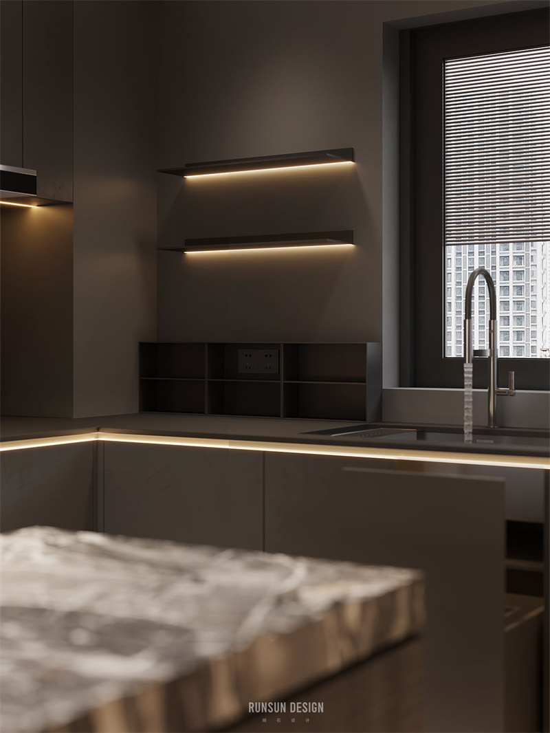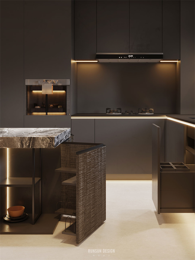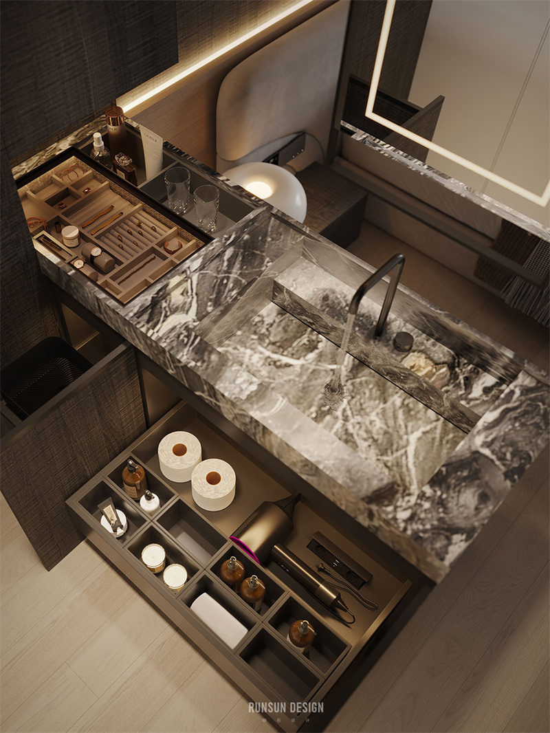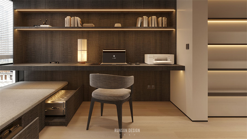 除了房子的風(fēng)格外,置物收納也是業(yè)主關(guān)心的一大主題。在這套空間中,我們將收納形式與設(shè)計(jì)美學(xué)相結(jié)合,規(guī)劃和解決物品分類整理的有序性,意圖用更美妙的方式打理生活起居。同時(shí)解決居住時(shí)間越長(zhǎng)房間收納越亂的難題。
