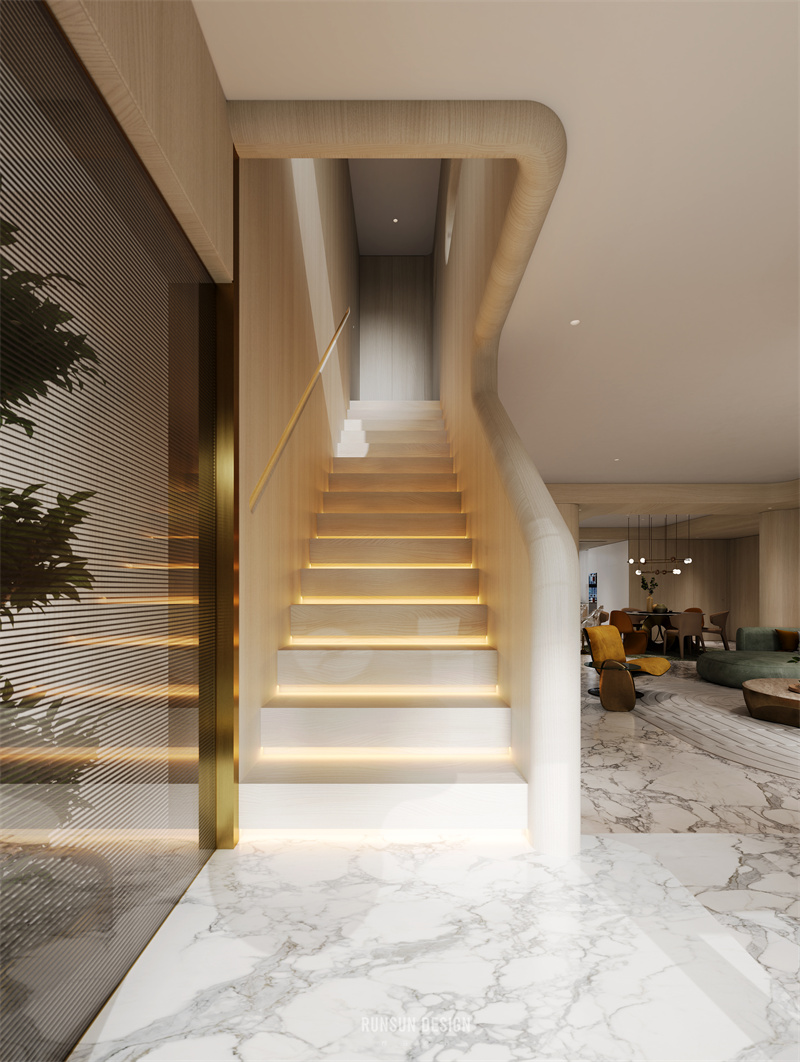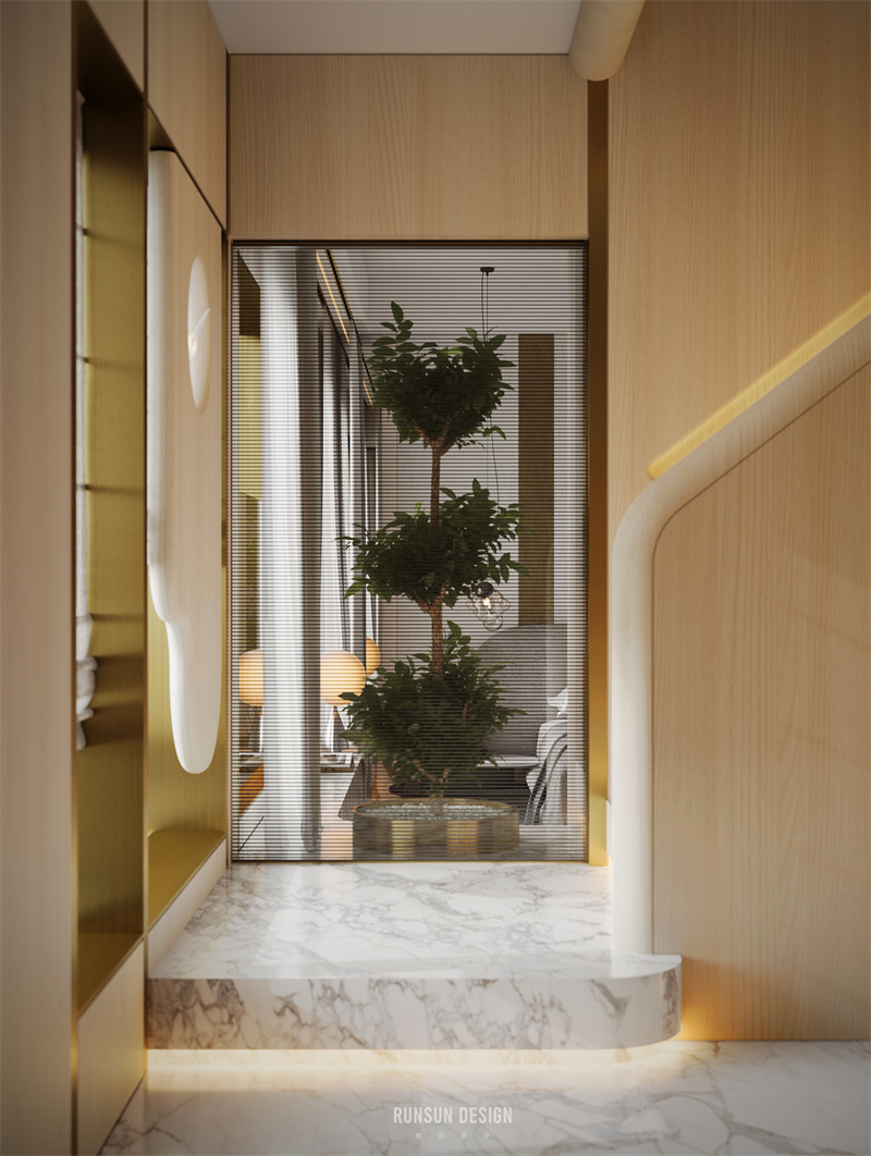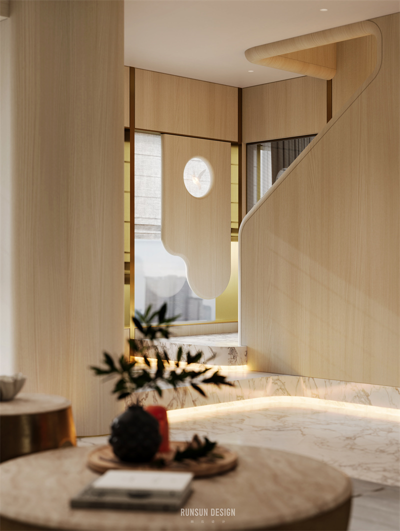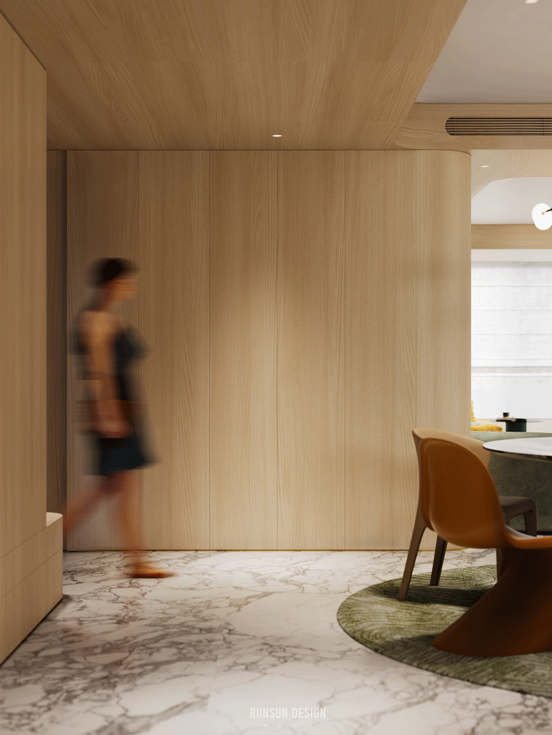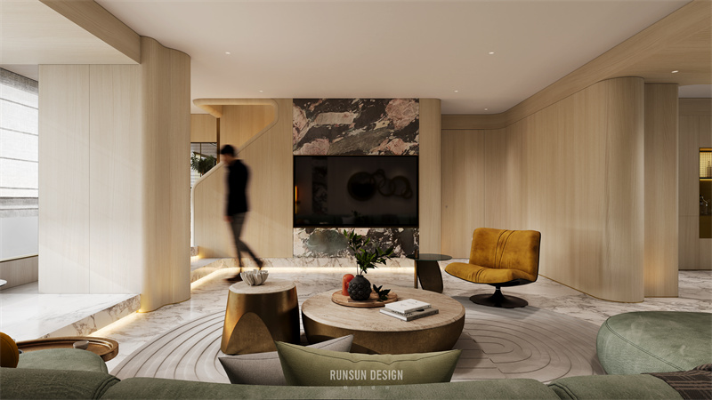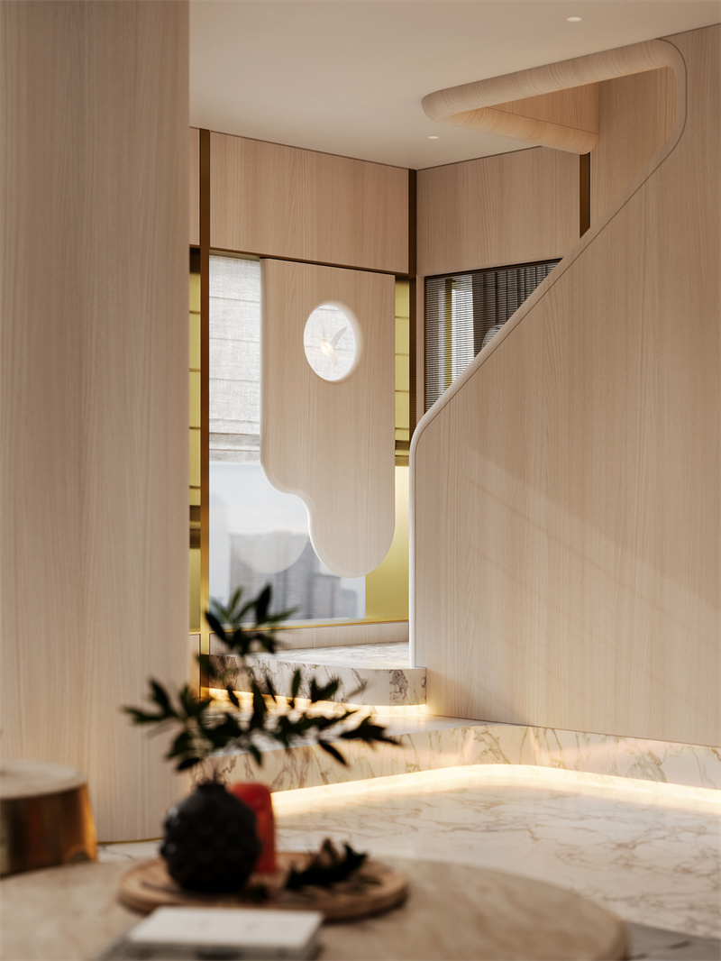 略帶弧度的墻板造型流轉(zhuǎn)于室內(nèi)
