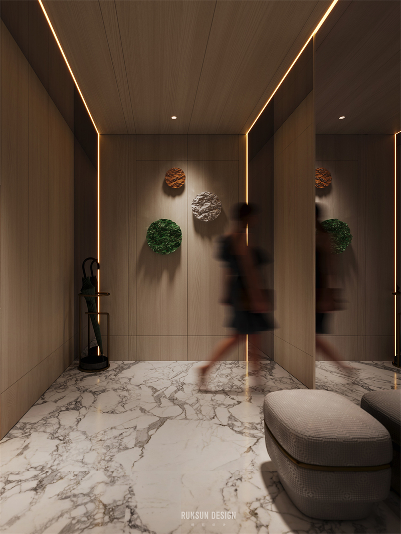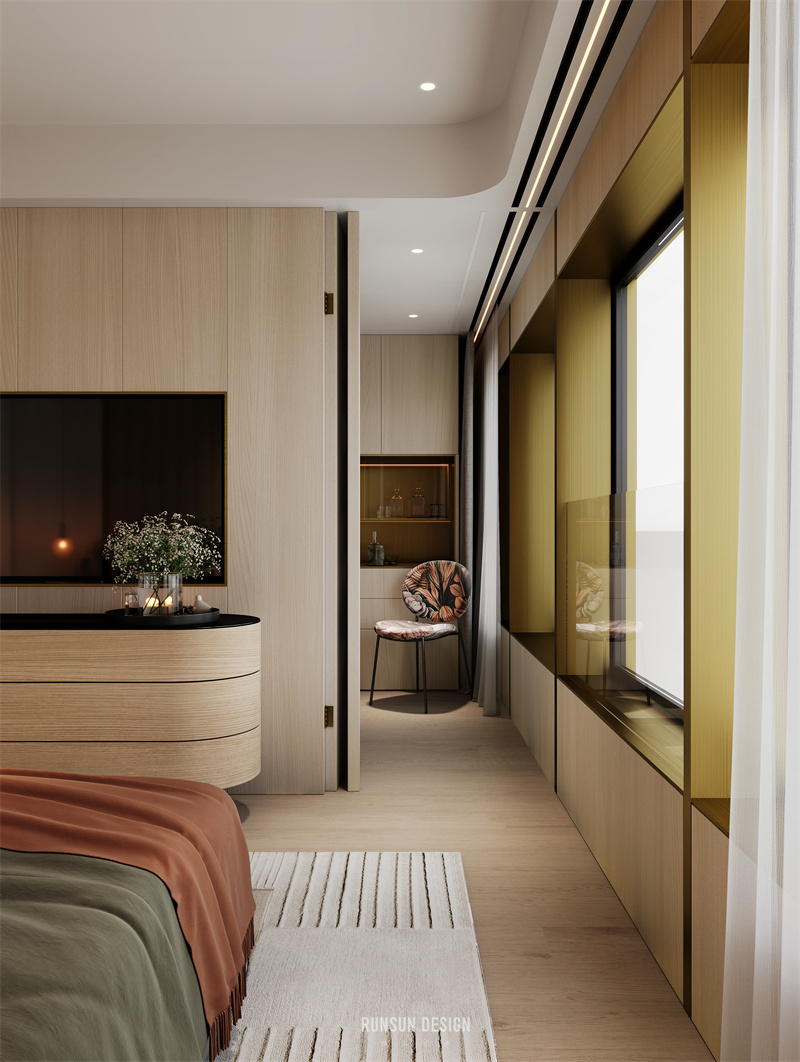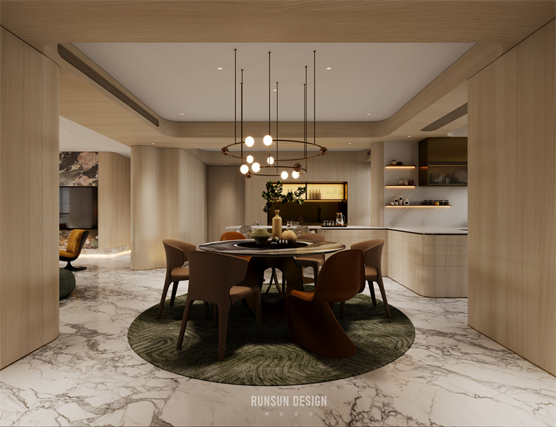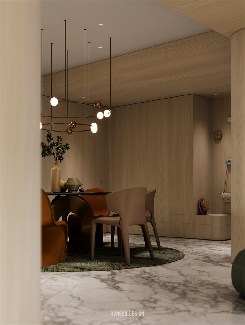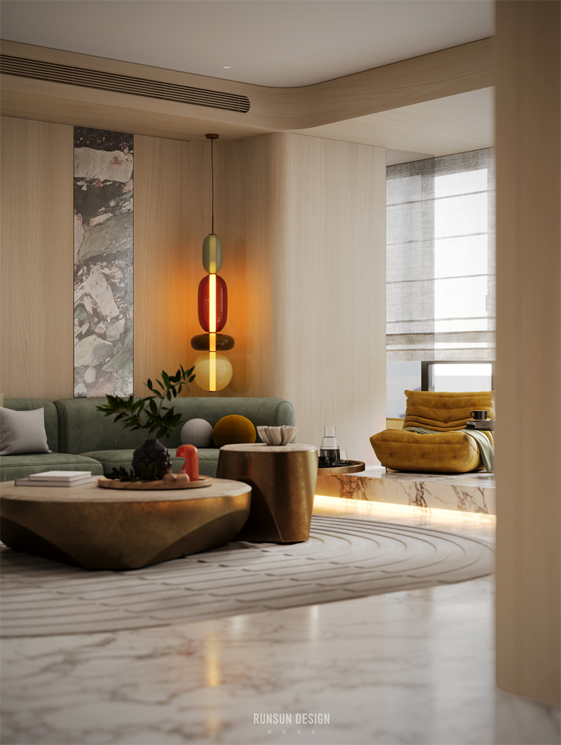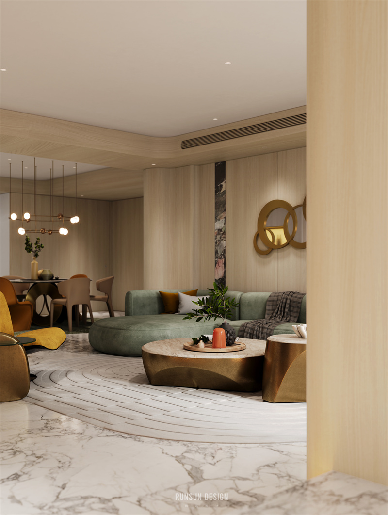 略帶弧度的墻板造型流轉(zhuǎn)于室內(nèi)
