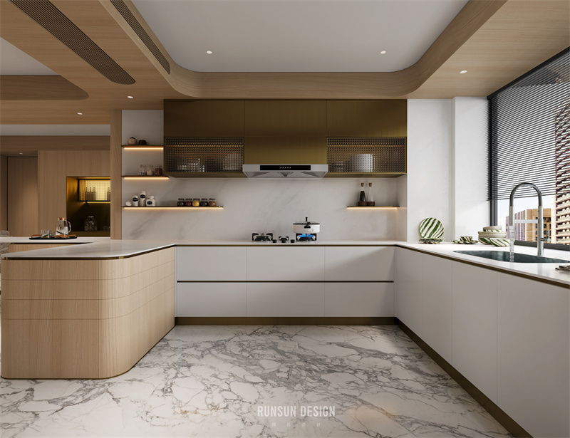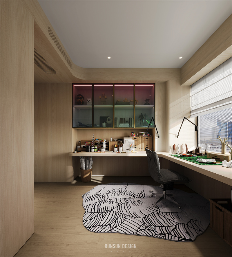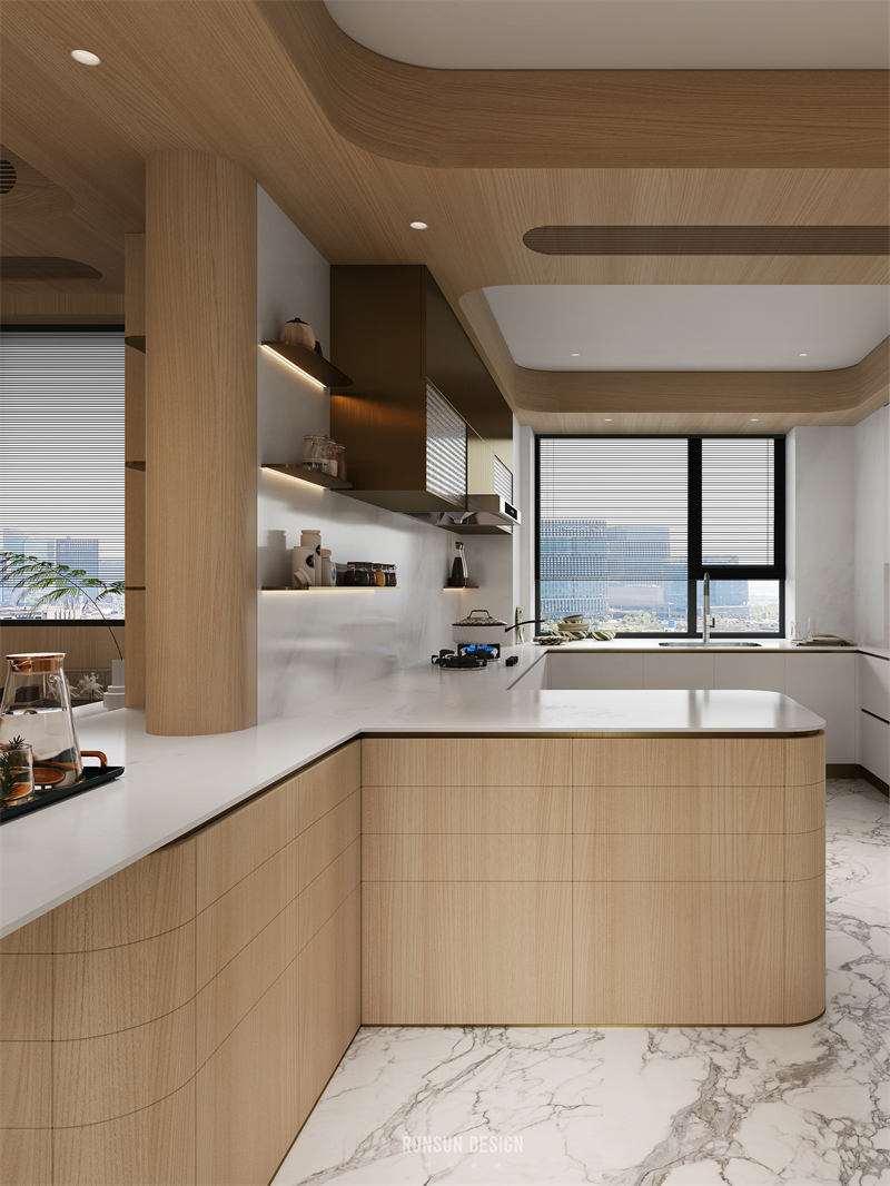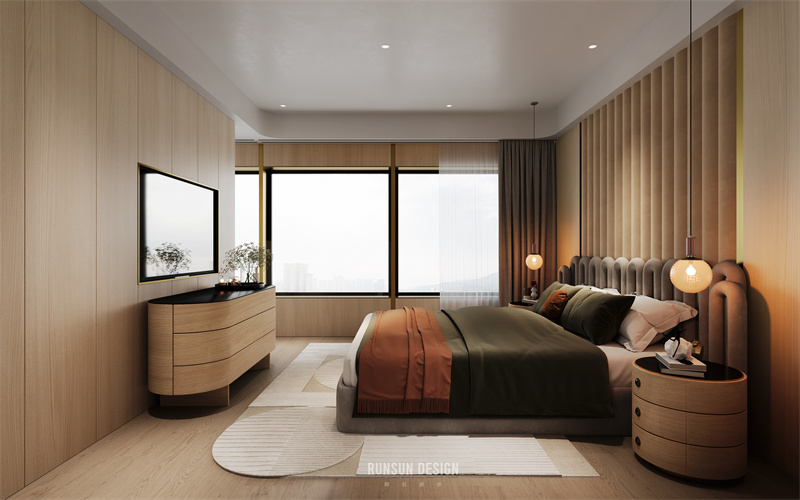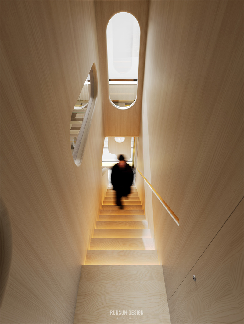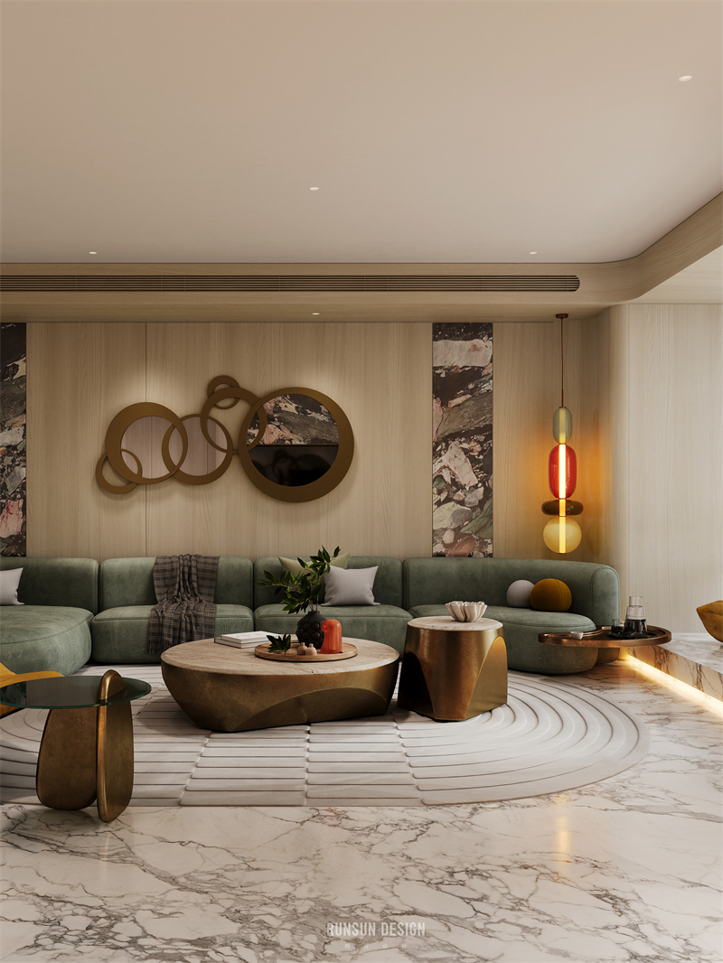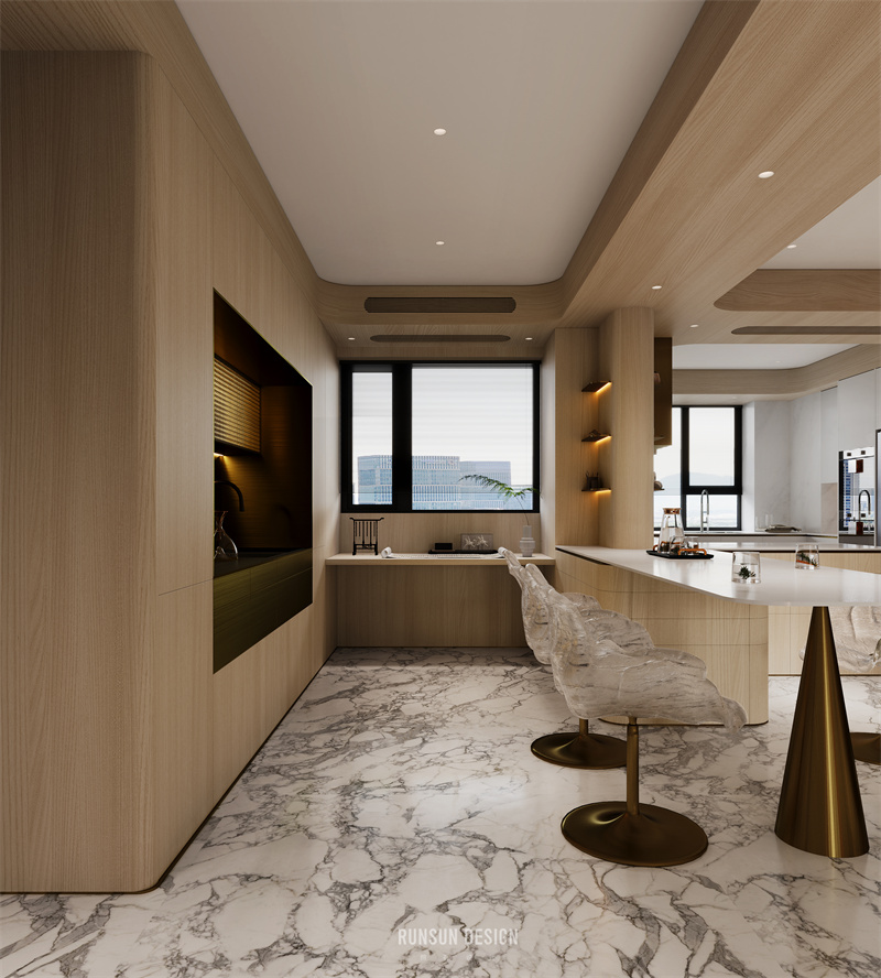 略帶弧度的墻板造型流轉(zhuǎn)于室內(nèi)