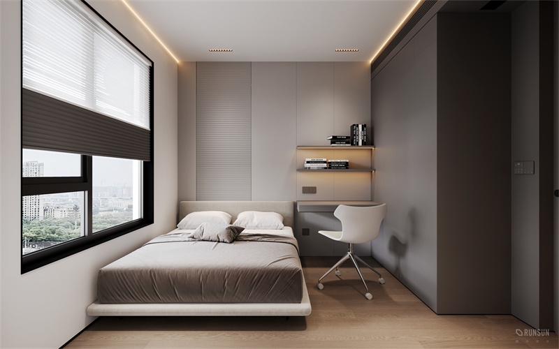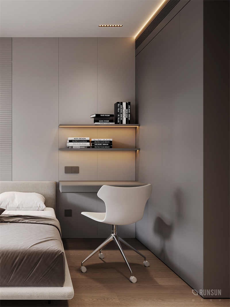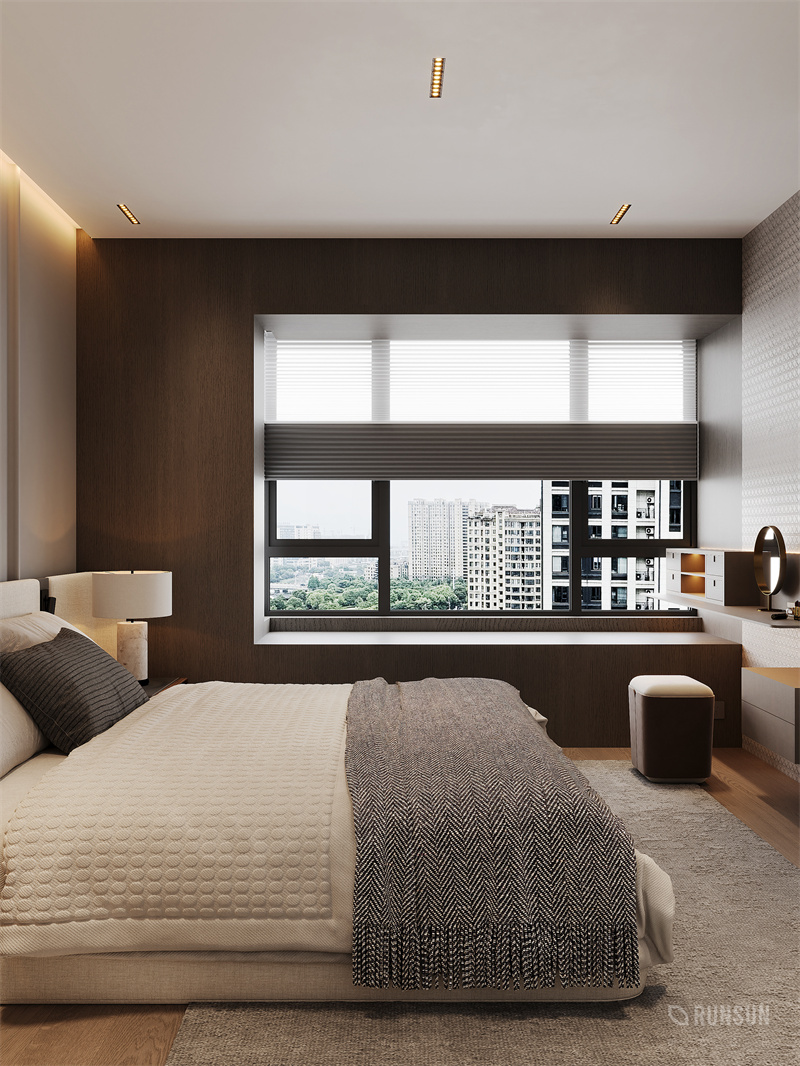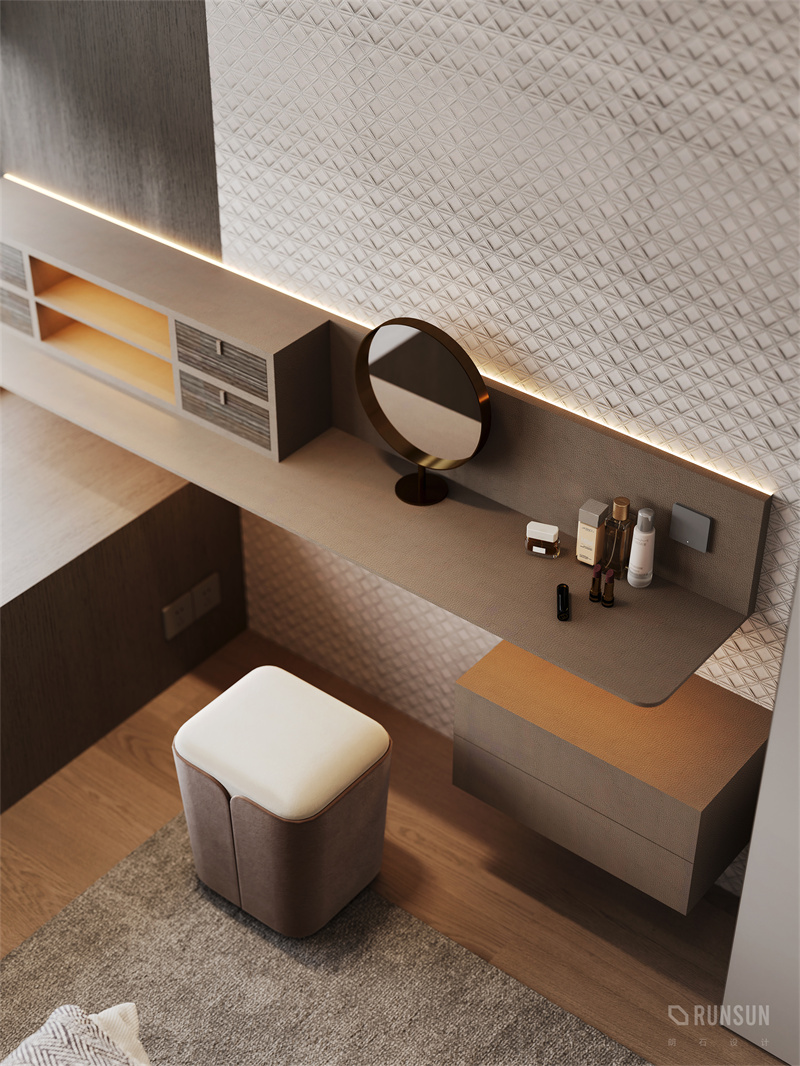與另一側(cè)的飄窗與梳妝臺(tái)相得益彰