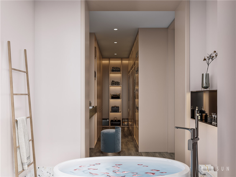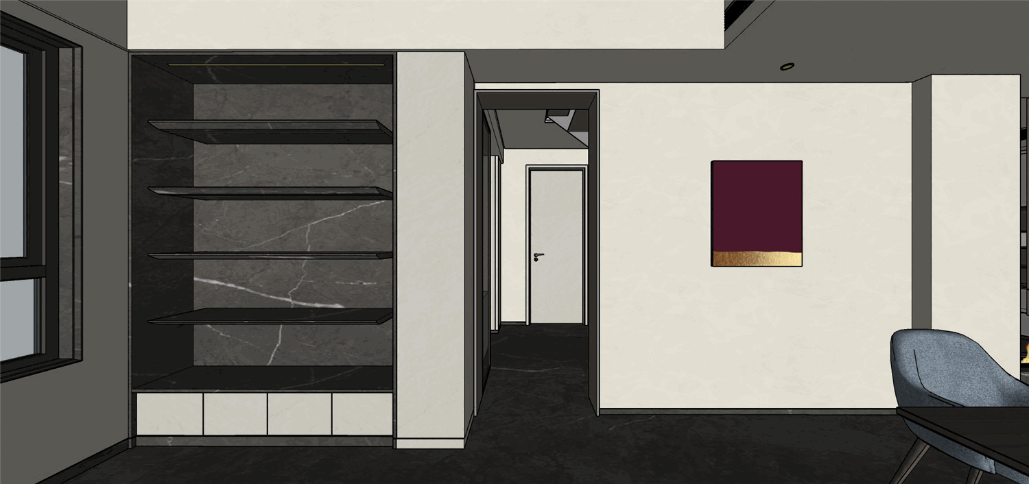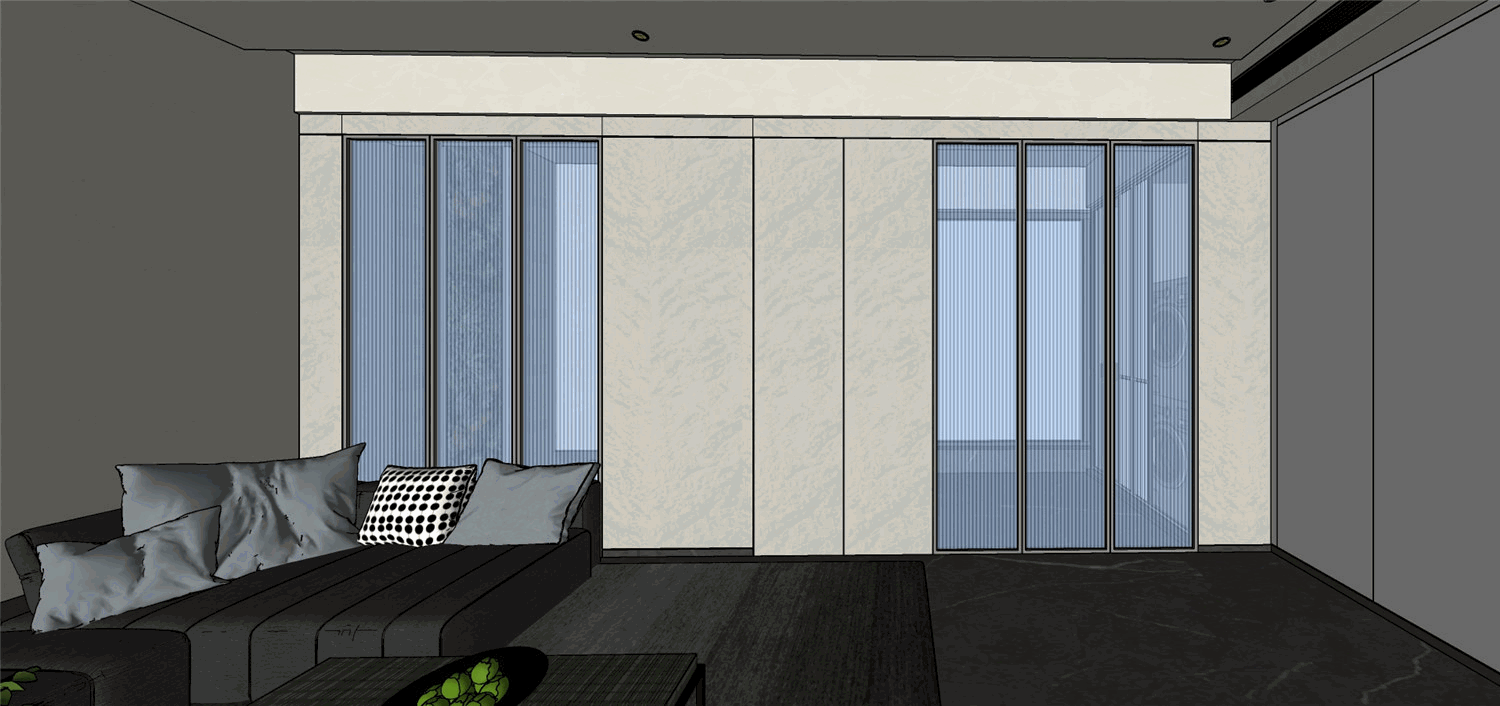 在空間中,為了使用的便利,我們從設(shè)計上將門的開啟方式與材質(zhì)做了一些特殊變化!比如餐邊的轉(zhuǎn)角柜可以呈現(xiàn)雙面開啟狀態(tài),更便宜取物品。比如陽臺的折疊門,我們運用透明的玻璃材質(zhì)與墻布硬包材質(zhì)做了相得益彰的連接,原本以為固定的墻壁原來也能和玻璃門一起折疊開啟,使得空間更加妙趣橫生。